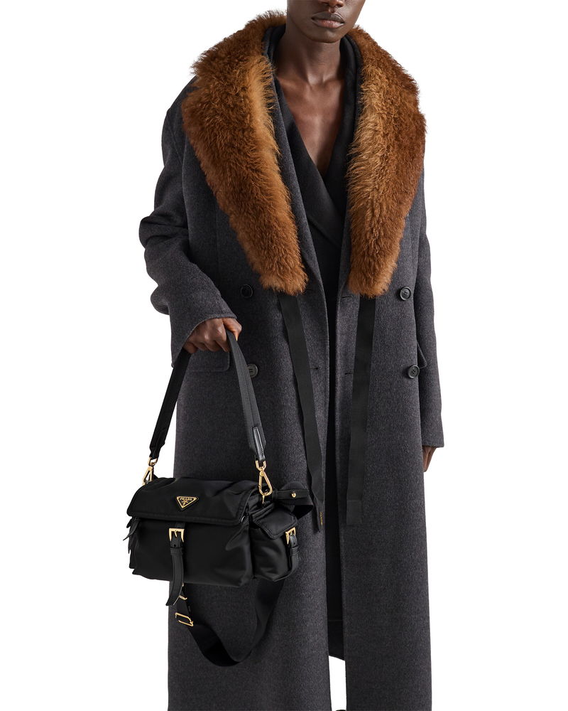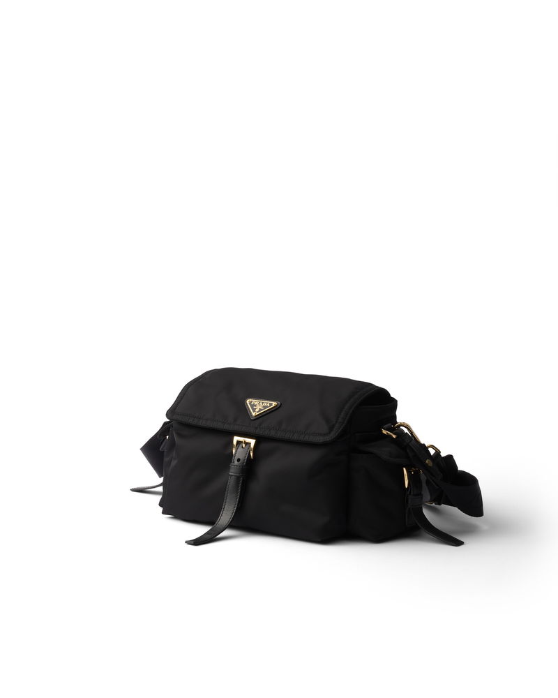 Explore Medium Re-nylon Shoulder Bag With Flap, Woman, Black