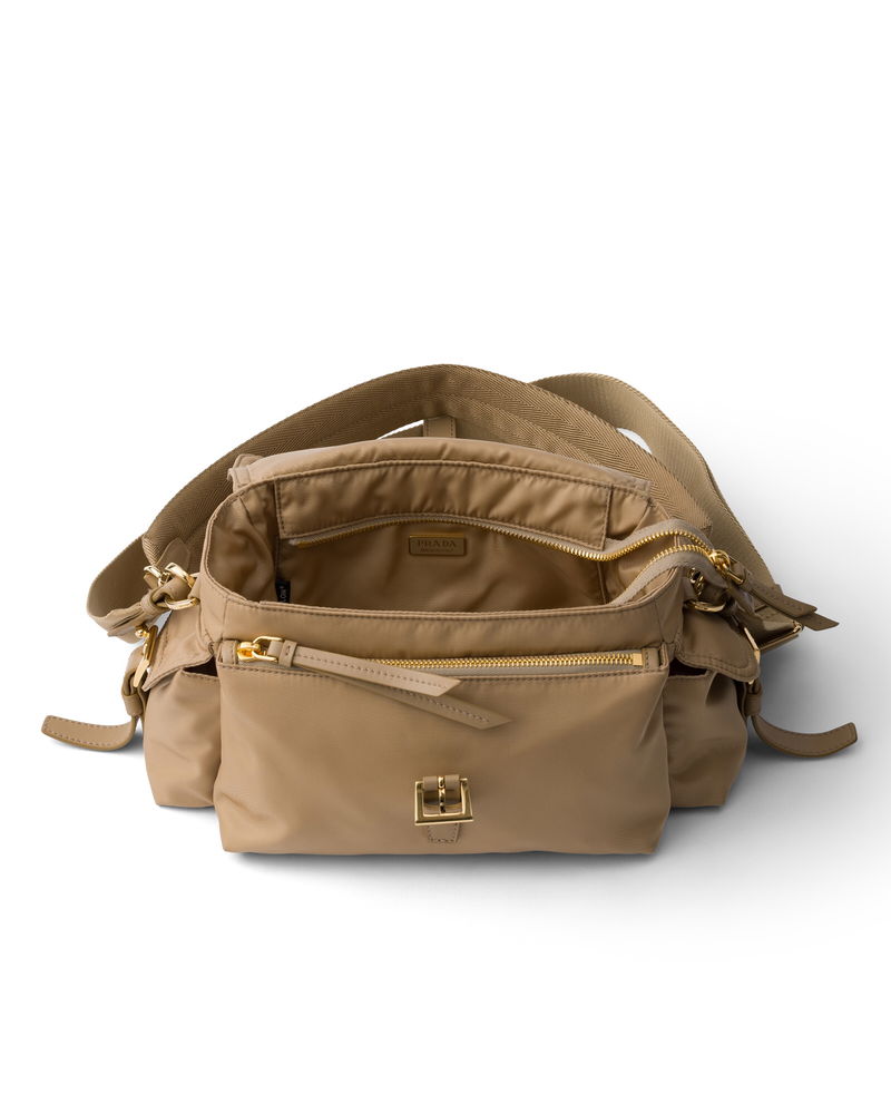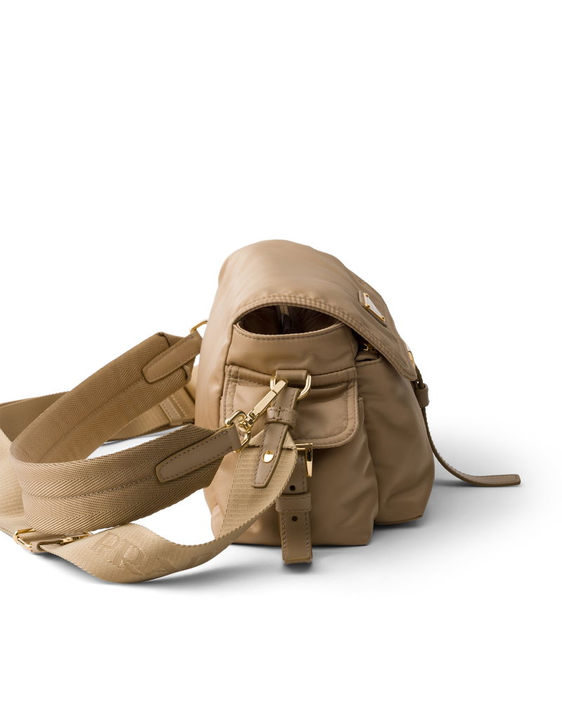 Explore Medium Re-nylon Shoulder Bag With Flap, Woman, Camel Brown