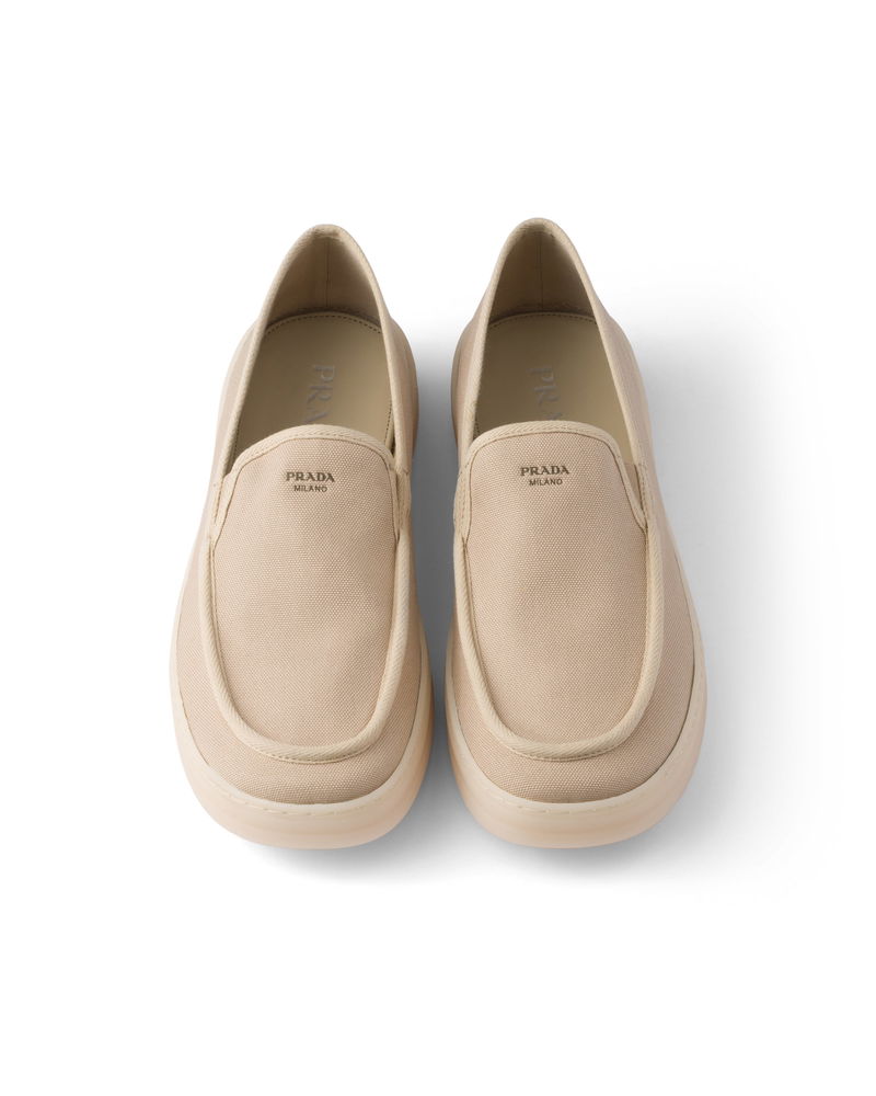 Fabric loafers. Logo screen-printed on the tongue. Apron with raised stitched edge. Rubber sole with triangle patterned tread.