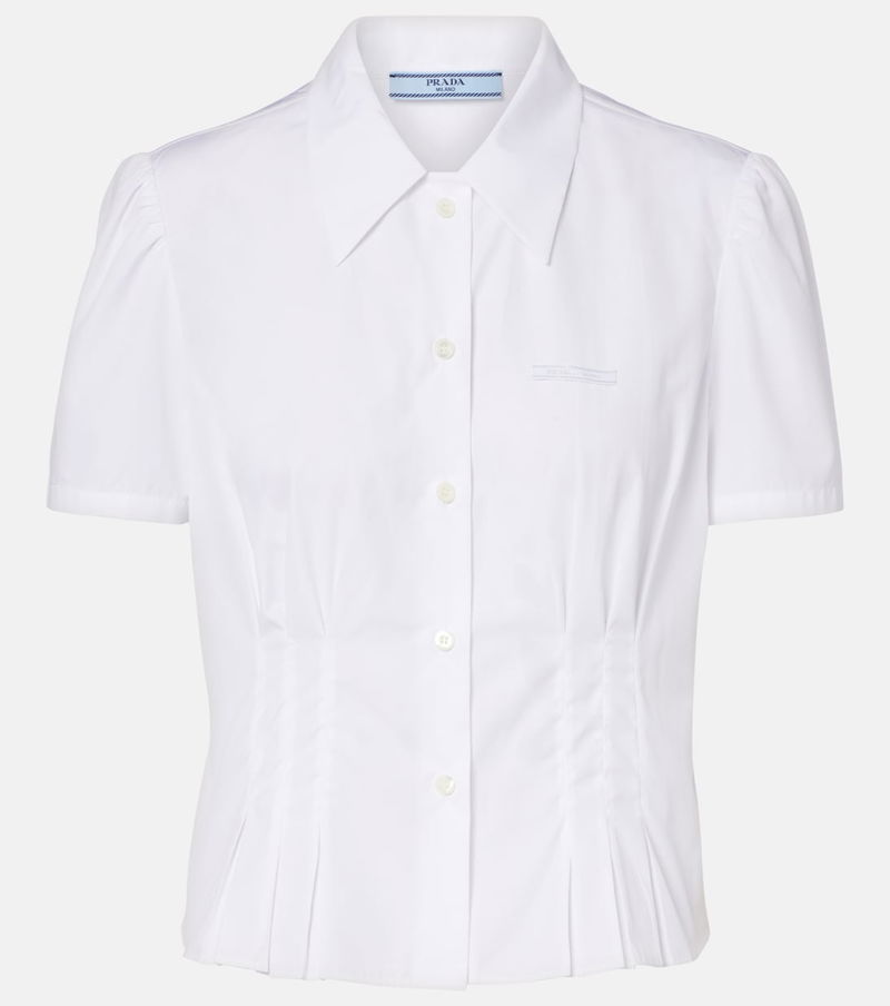 Add this short-sleeved shirt from Prada to your refined staples collection. Made from cotton, the style is complete with elegant pleats and self-tie detailing at the back to create a slight gathering.