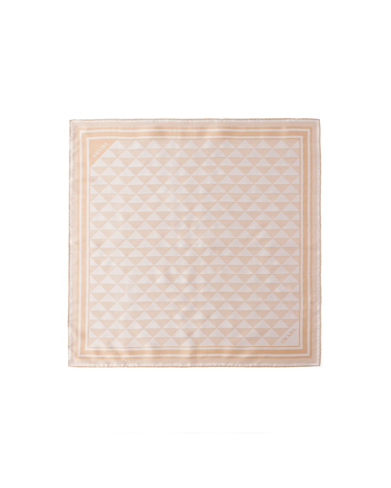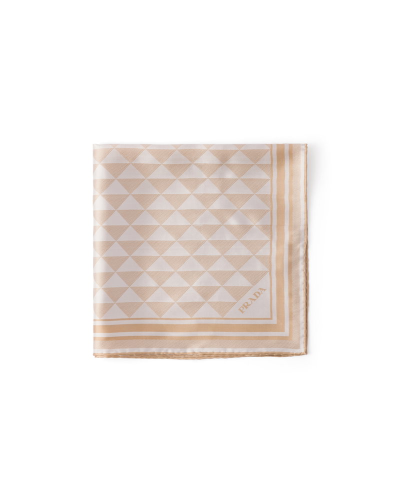 Jacquard Silk Scarf 55, Woman, Camel Beige/chalk White