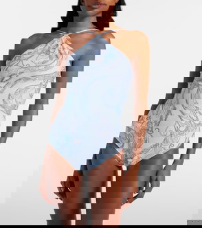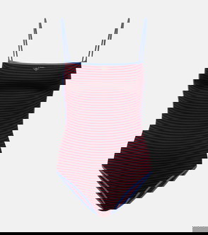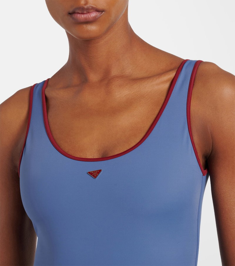 Prada takes Italian heritage into a distinctly modern direction with a streamlined and fashion-forward approach. This jersey swimsuit is designed with a contrasting trim and the signature triangle logo at the front.
