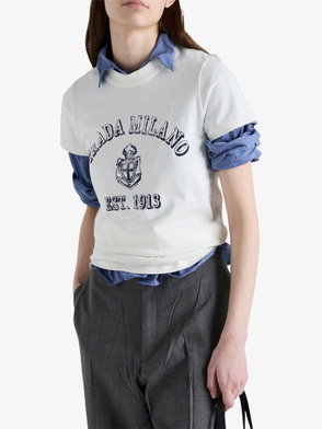 Shop More: White Clothing White Tops White T-Shirts PRADA Clothing PRADA Tops PRADA White Clothing PRADA White Tops