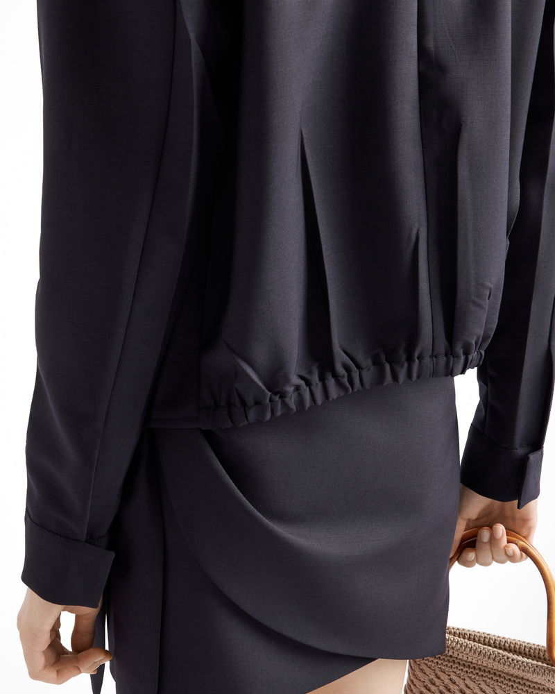 Kid Mohair Blouson Jacket, Woman, Navy, Size 36