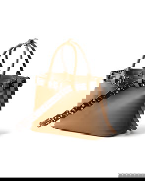 Large Leather Tote Bag With Buckles, Woman, Caramel