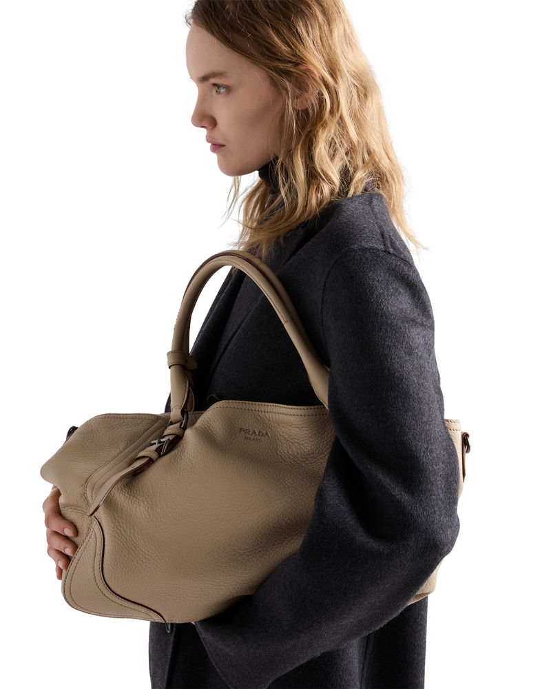 Large Leather Tote Bag, Woman, Sand Beige