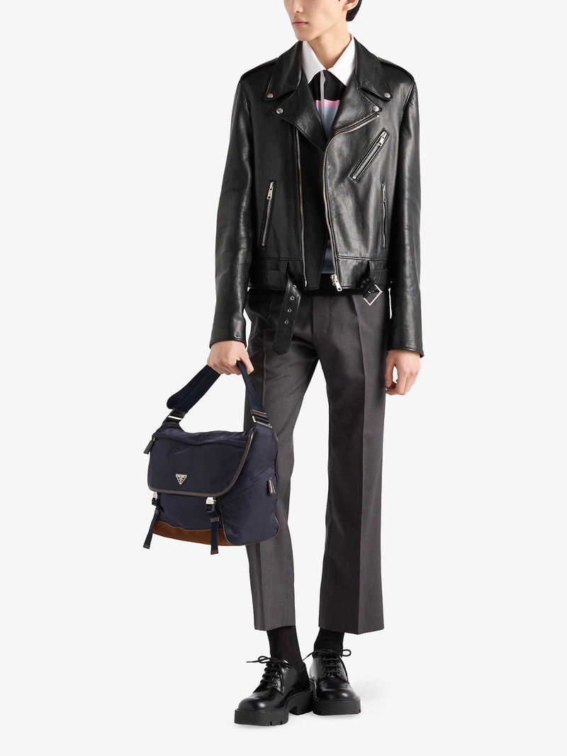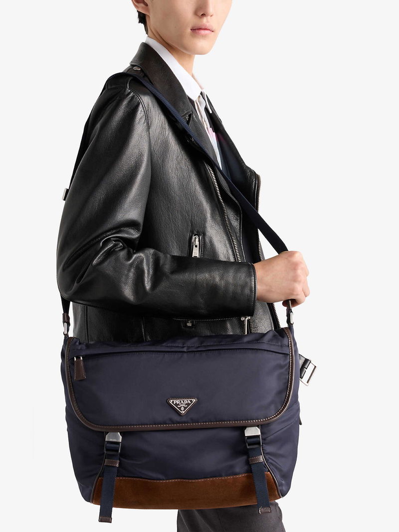 Large Re-Nylon And Leather Shoulder Bag