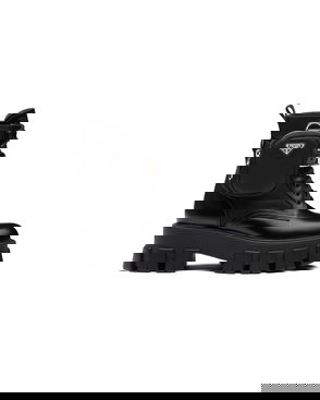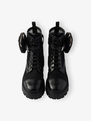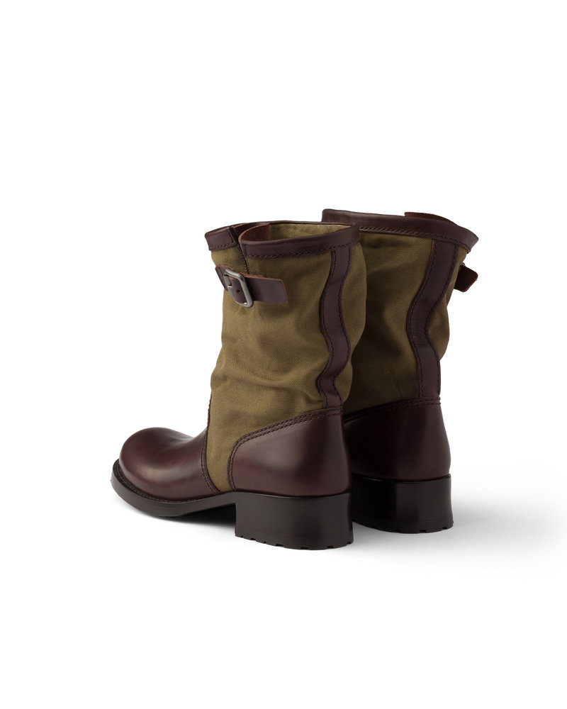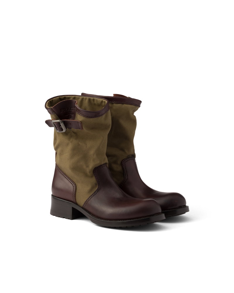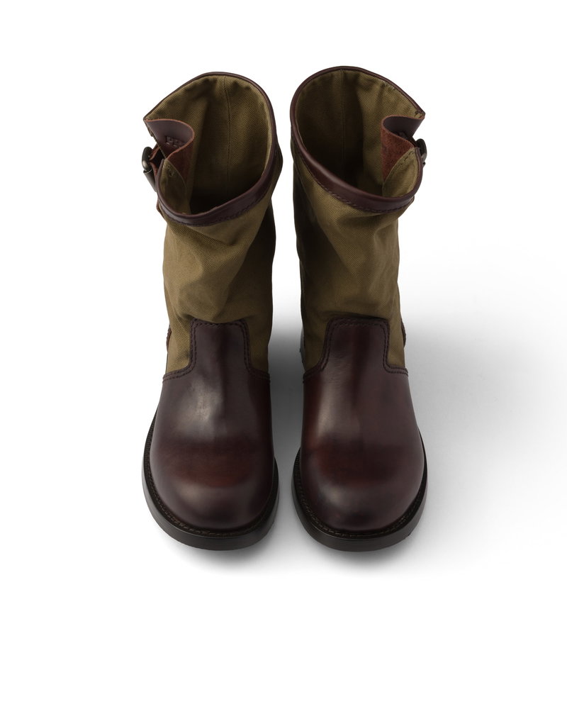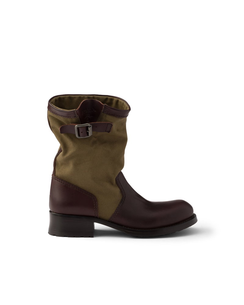 Leather and canvas boots. Upper with strap and logo-engraved metal buckle. Monoblock rubber and leather sole with hot-stamped logo.
