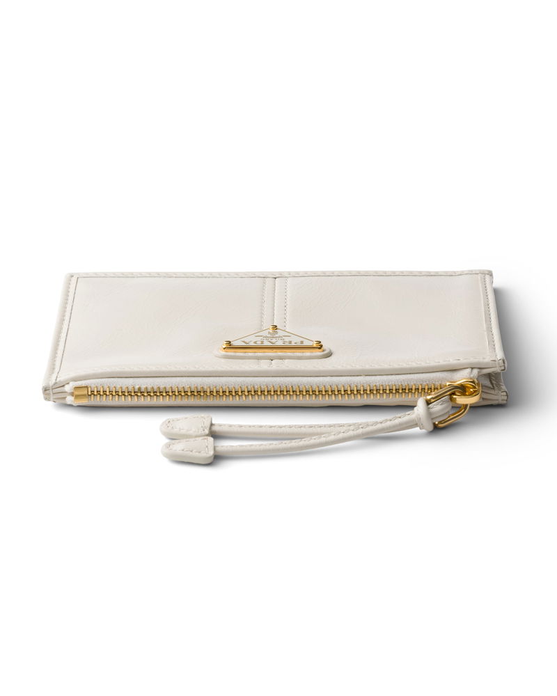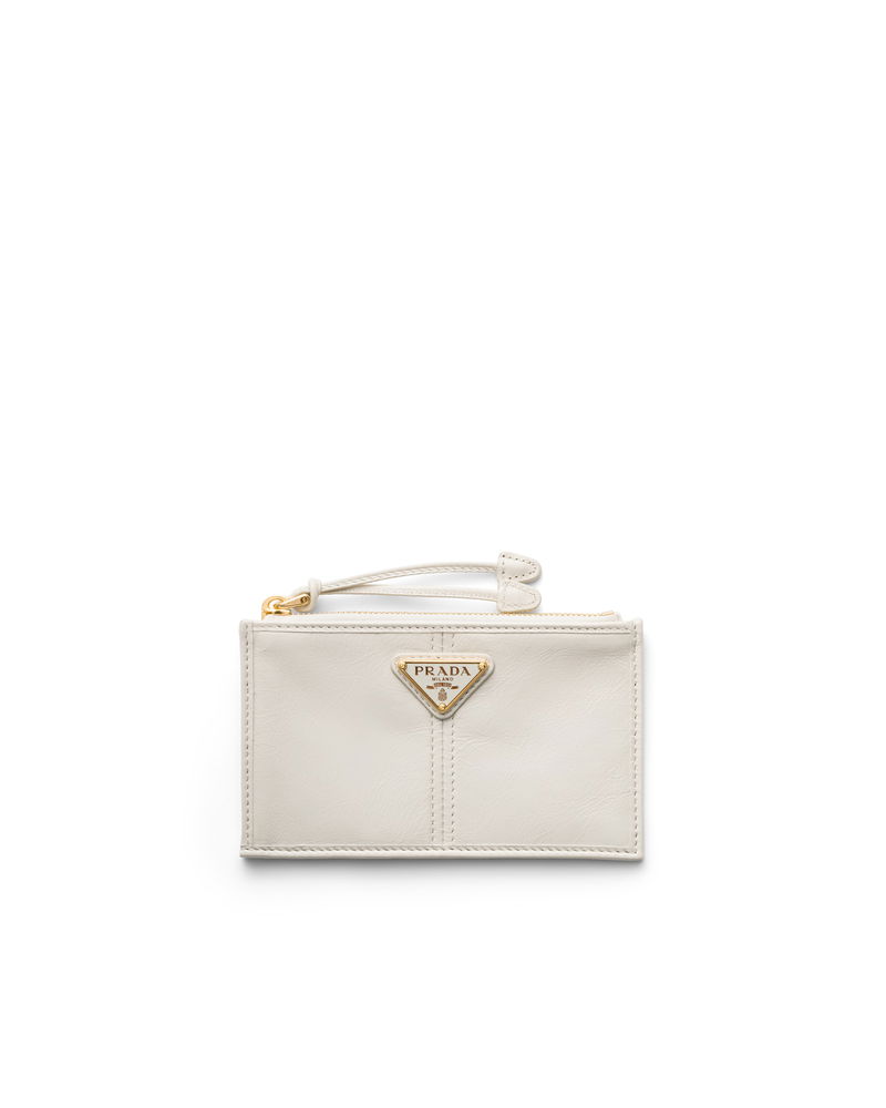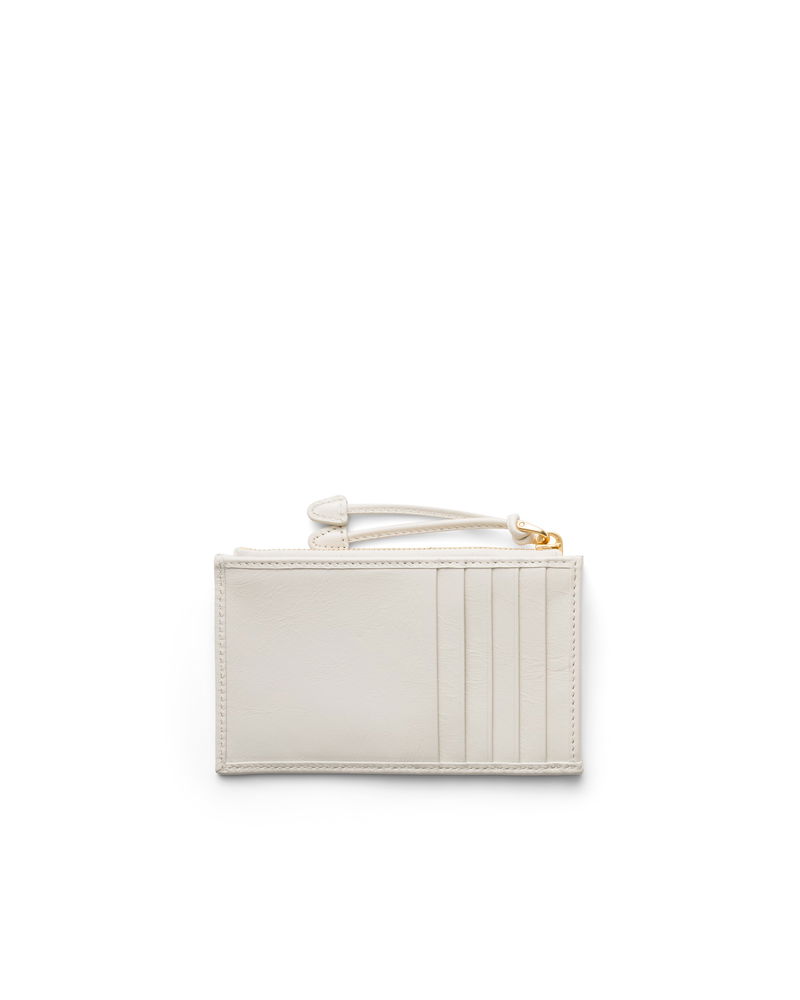 Leather Card Holder With Zipper, Woman, White