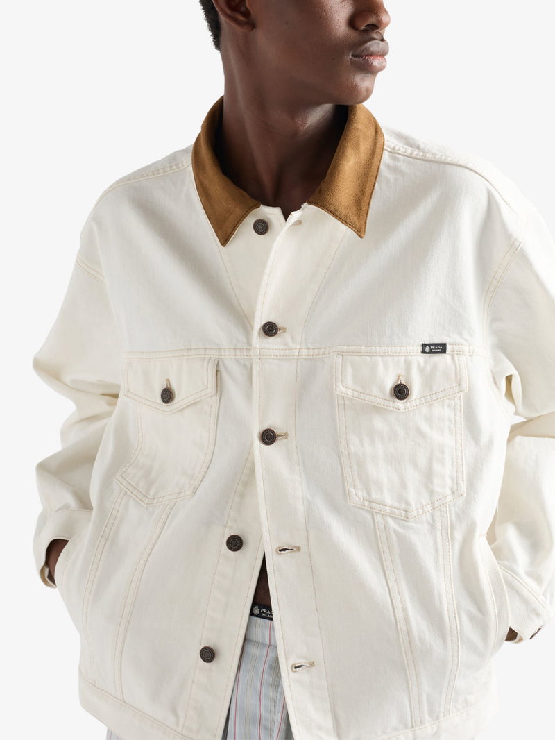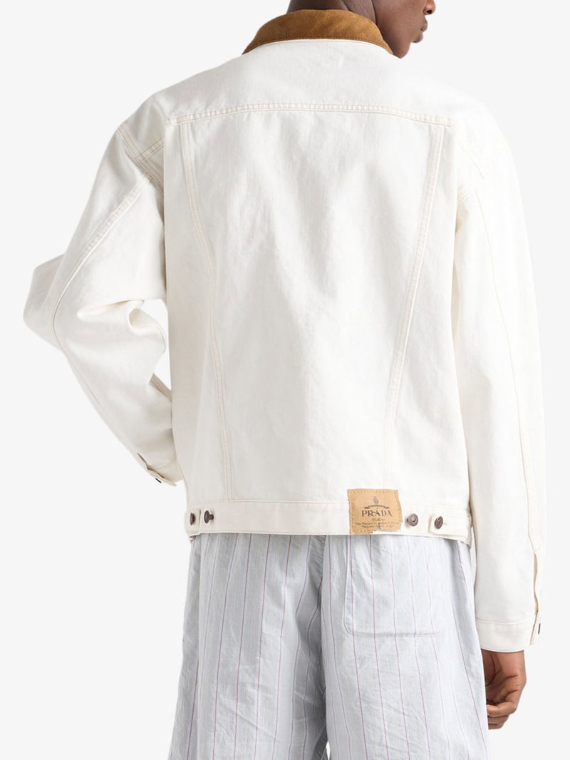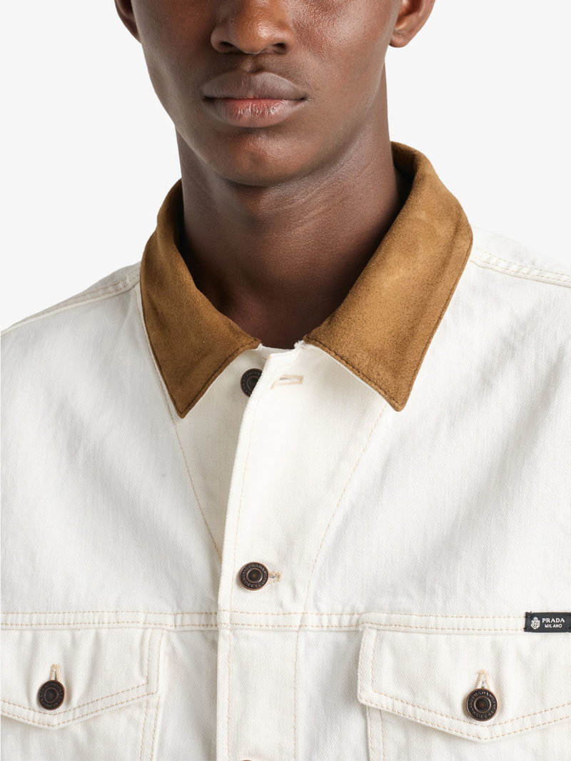 Leather-Collar Regular-Fit Denim Jacket