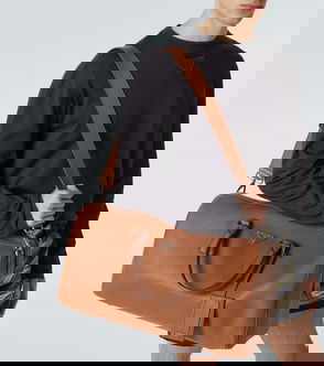 Prada takes Italian heritage into a distinctly modern direction with a streamlined and fashion-forward approach. Crafted from brown leather, this bag has an adjustable shoulder strap, a back zip pocket, and comes adorned with the distinctive triangle logo.