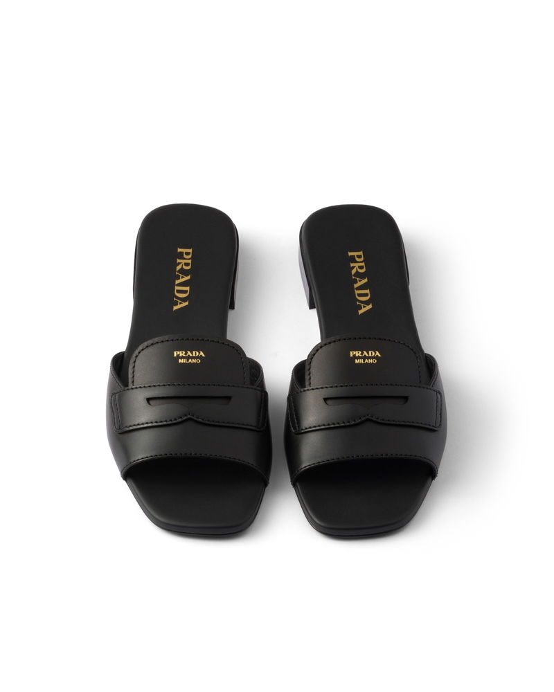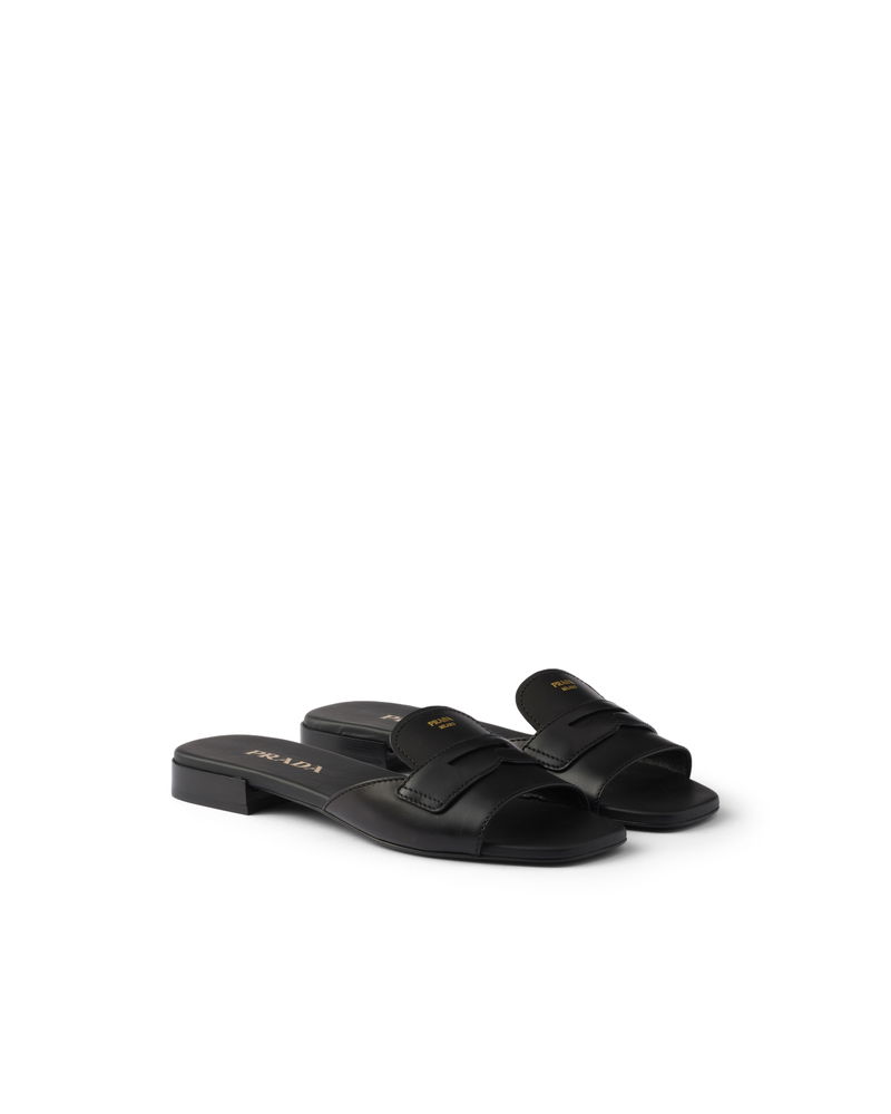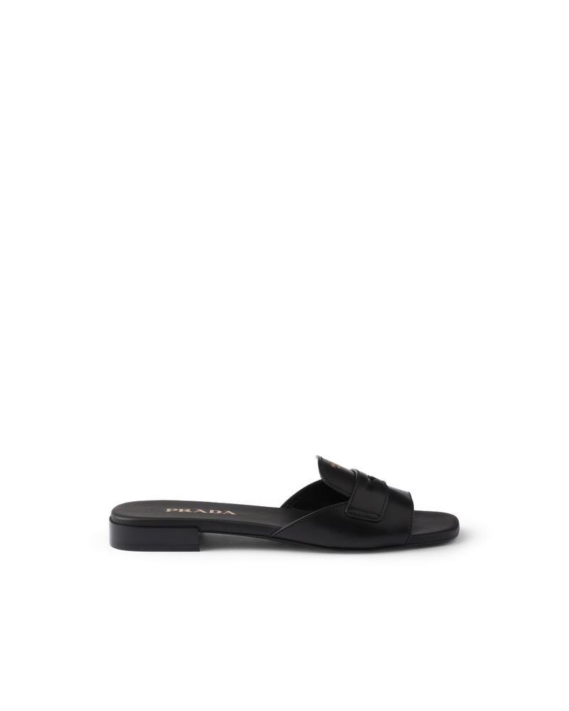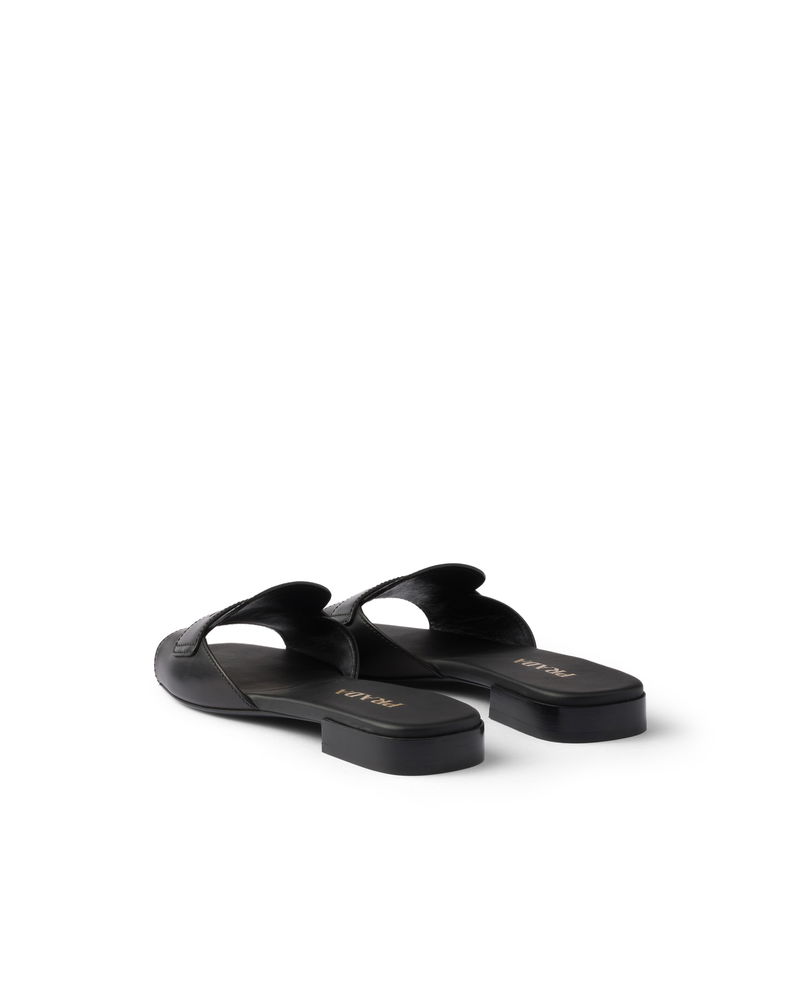 Leather Slides, Woman, Black, Size 35