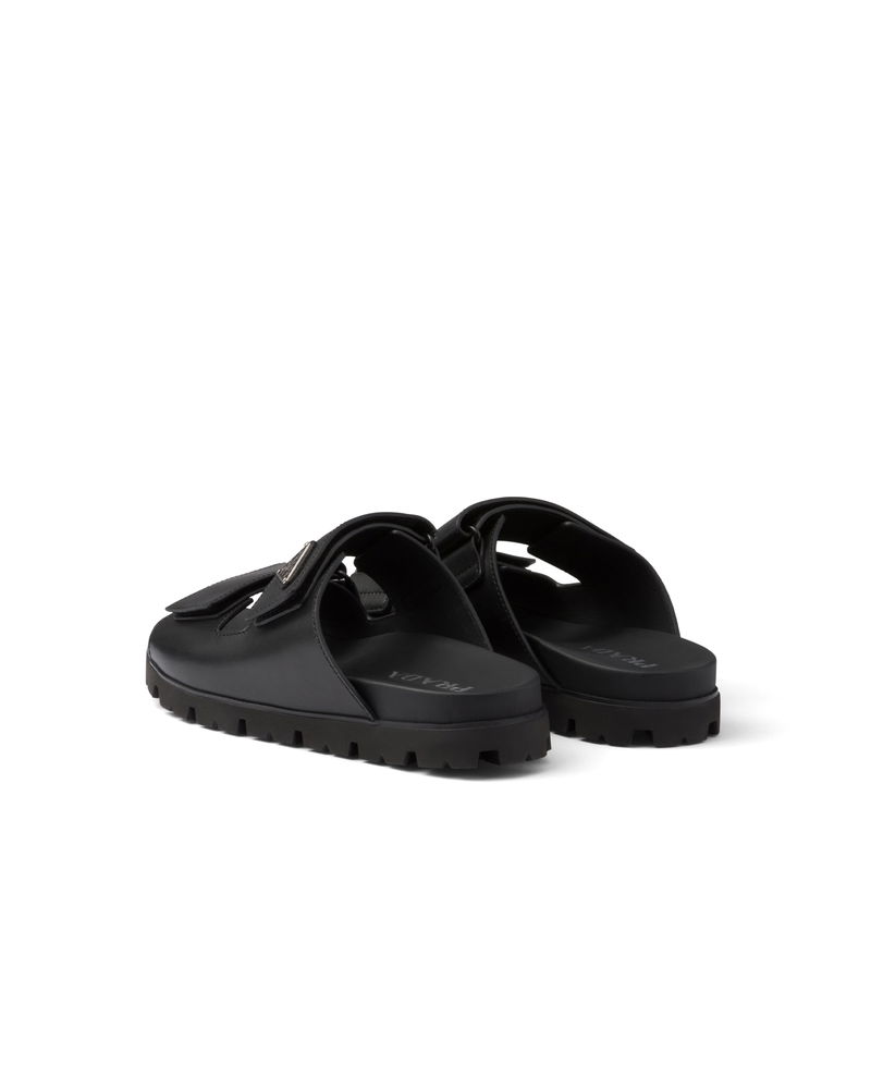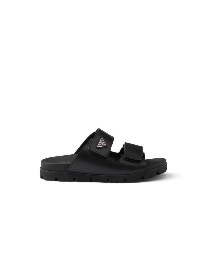 Leather Strap Slides, Man, Black, Size 5