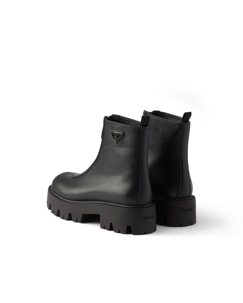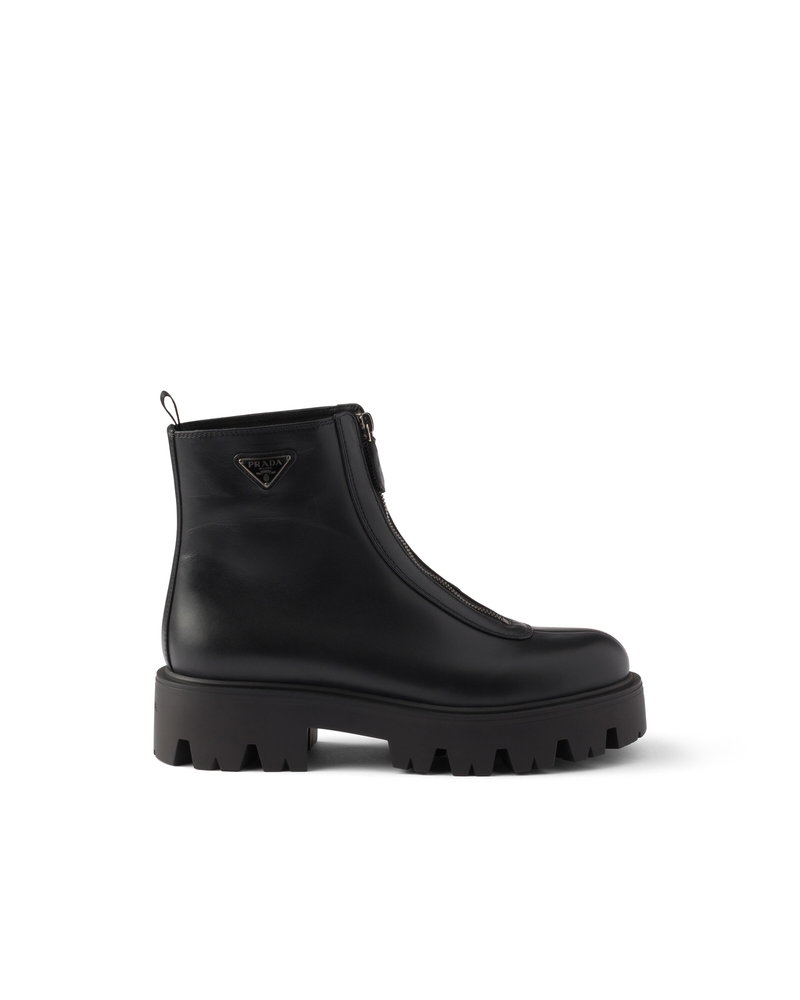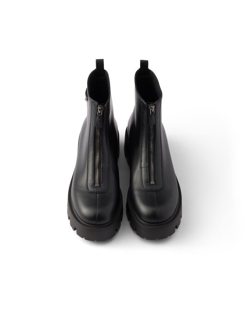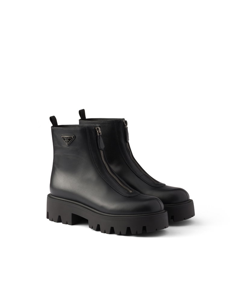 Leather Zipper Booties, Woman, Black, Size 37,5