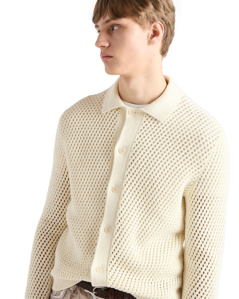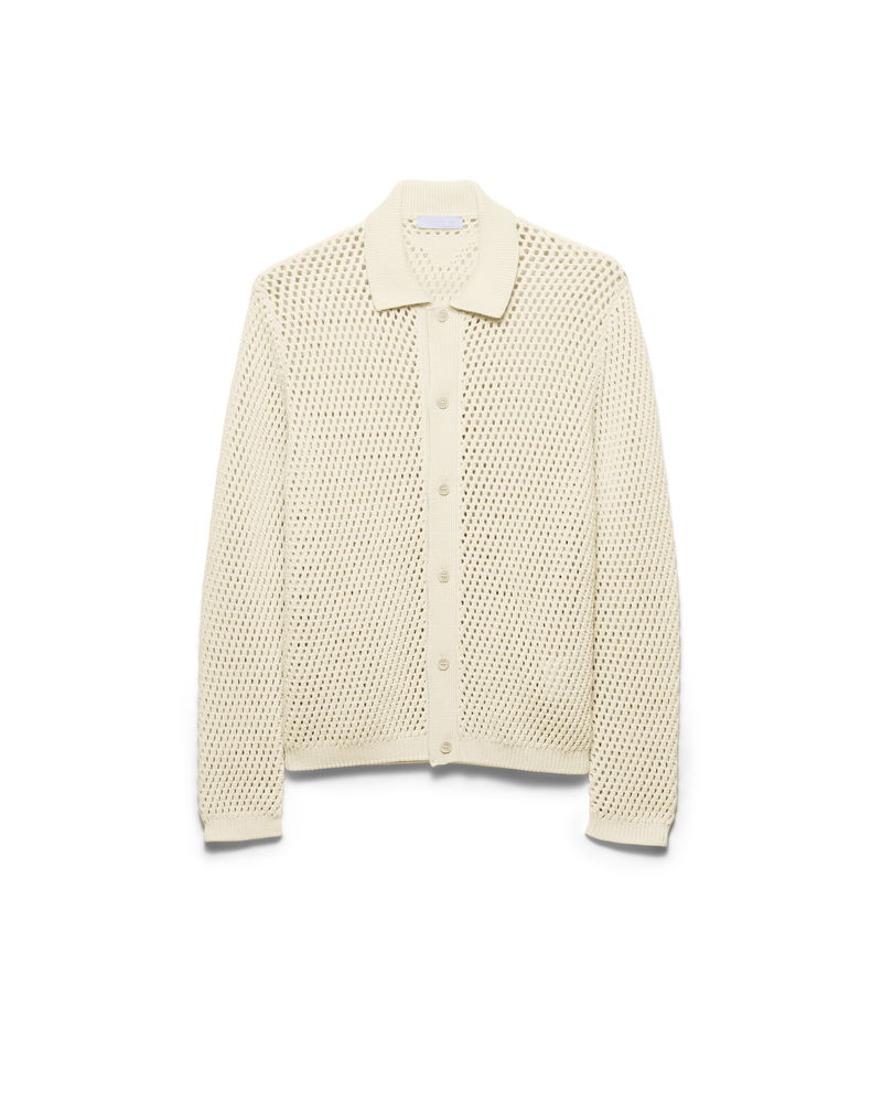 Shop More: Neutral Clothing Neutral Knitwear PRADA Clothing PRADA Knitwear PRADA Cardigans Neutral Cardigans PRADA Neutral Clothing