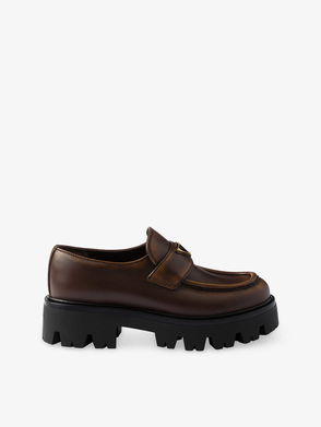 These deep brown loafers from Prada are a timeless installment to your footwear rotation. Made in Italy from polished calf leather, they have logo-adorned straps and comfortable rubber soles.