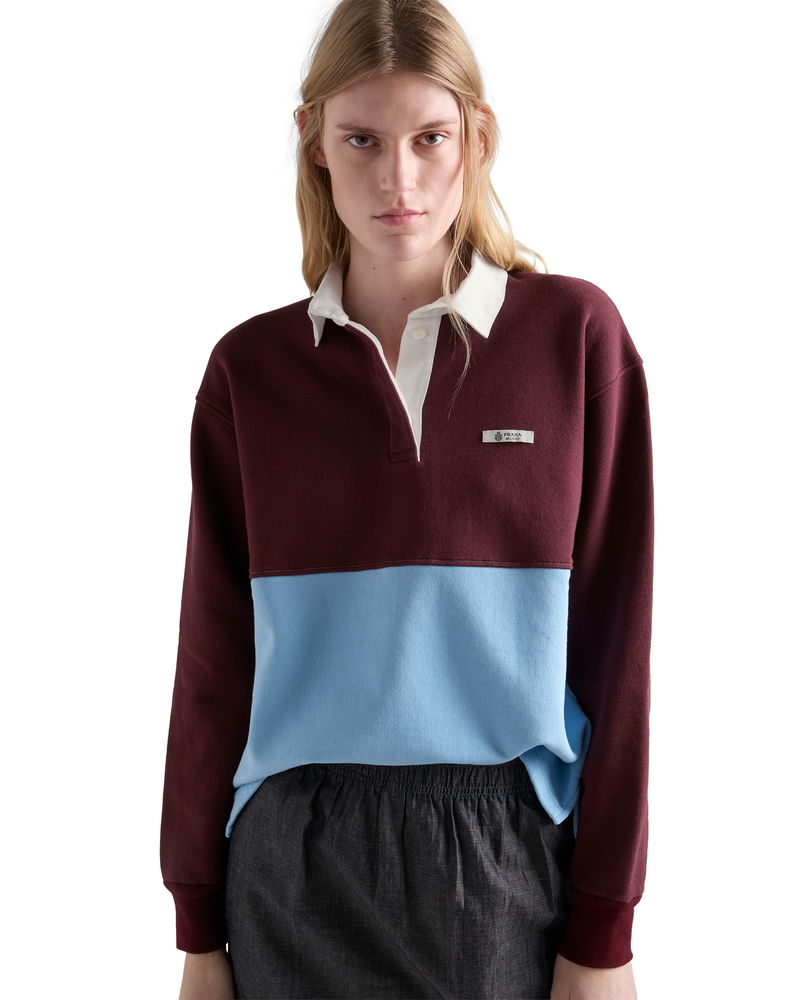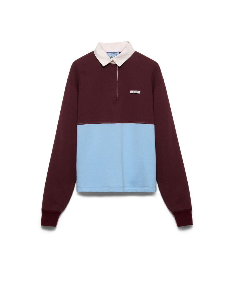 Long-Sleeved Cotton Fleece Polo Shirt
