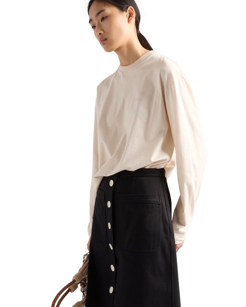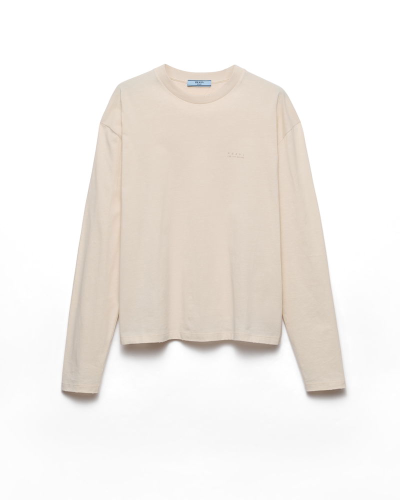 Long-sleeved Cotton Jersey T-shirt, Woman, Chalk, Size S