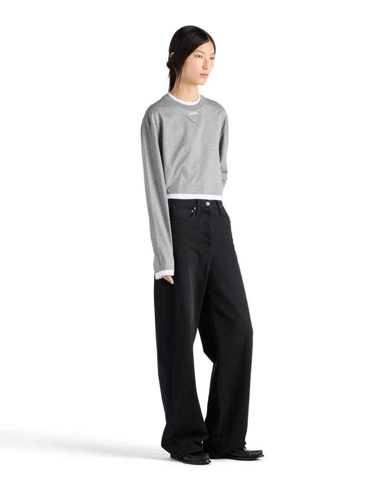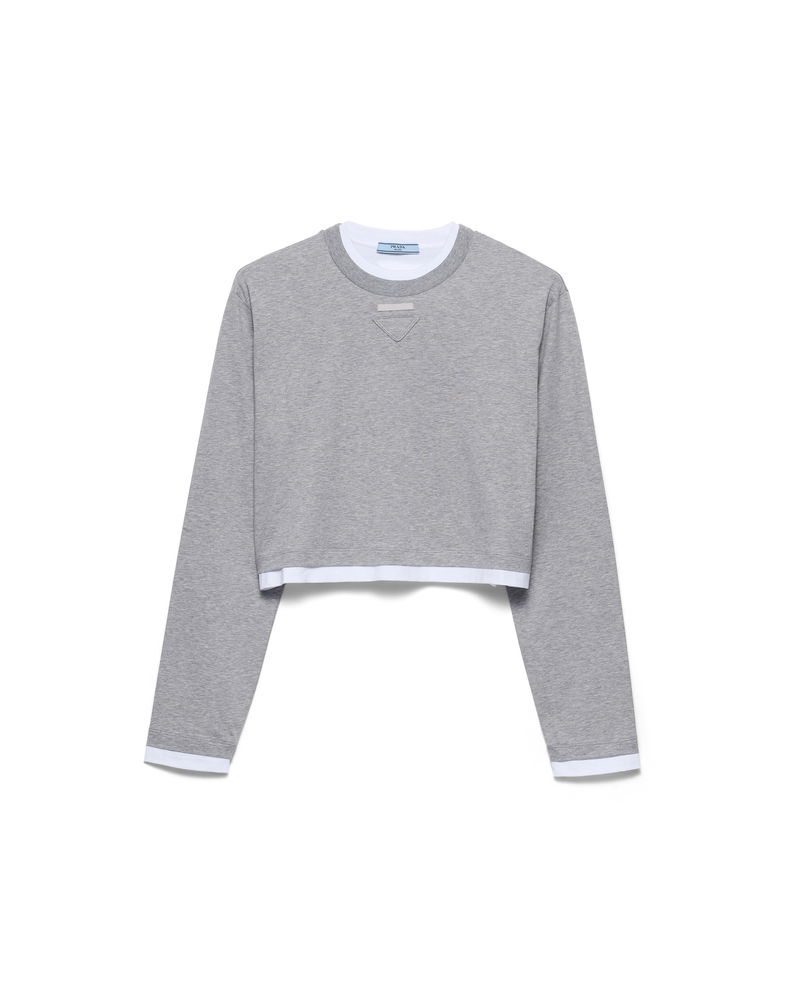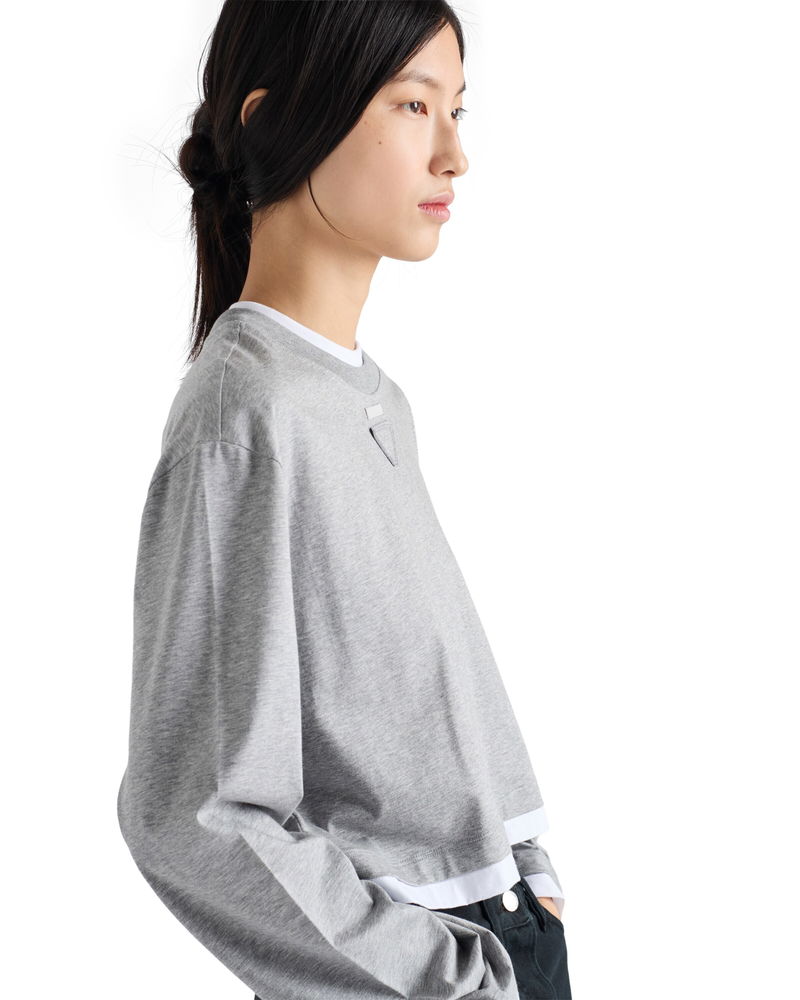 Long-sleeved Cotton Jersey T-shirt, Woman, Grey, Size XS