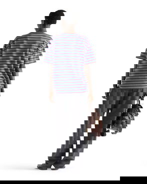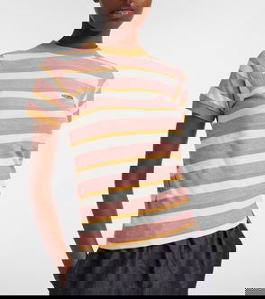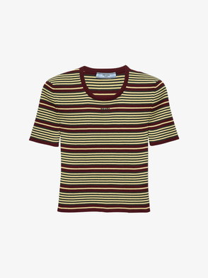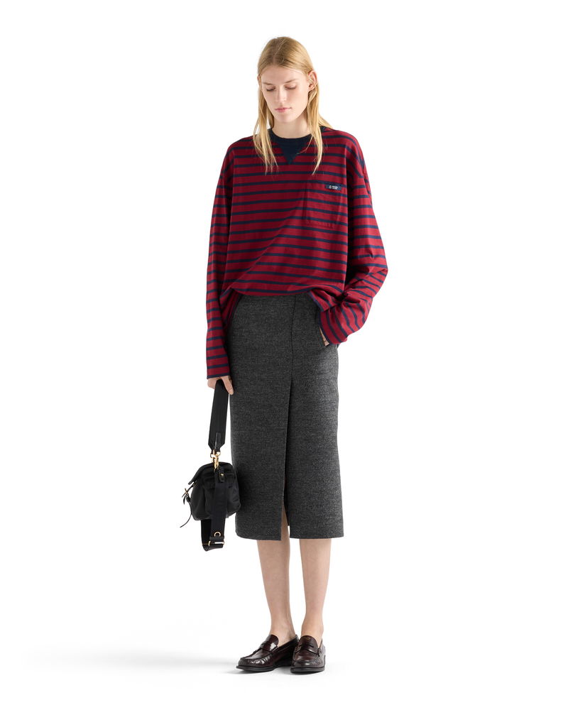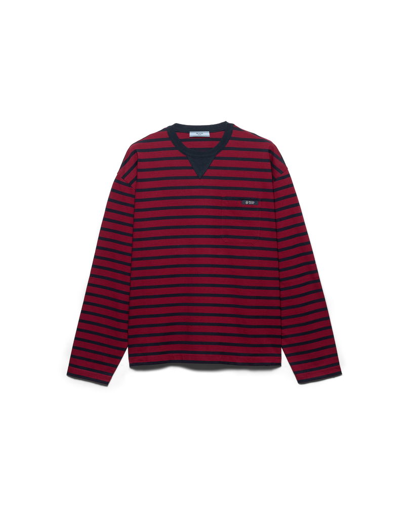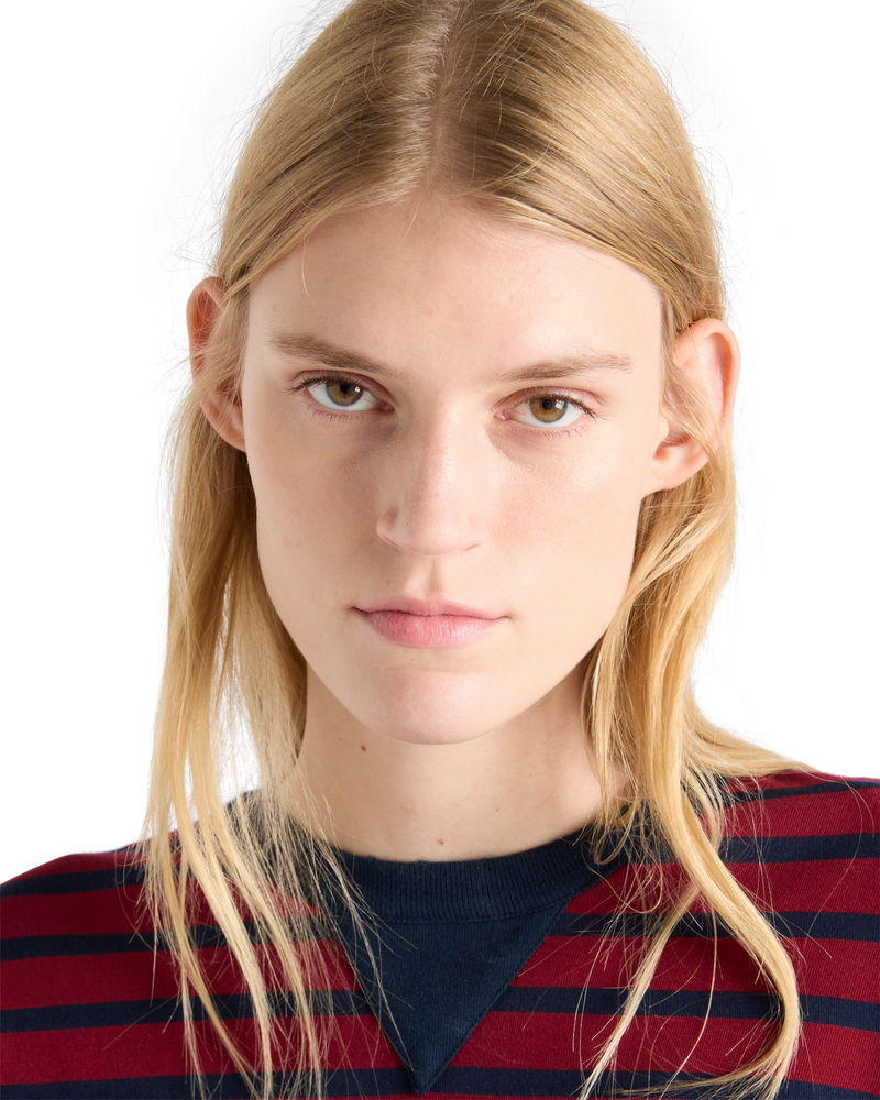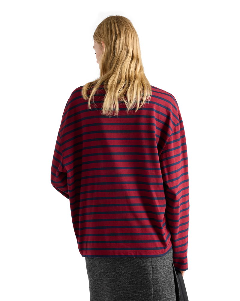 Long-sleeved Striped Jersey T-shirt, Woman, Amaranth/blue, Size XS