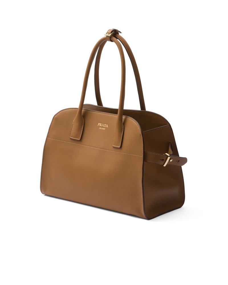 Medium Leather Tote Bag, Woman, Caramel