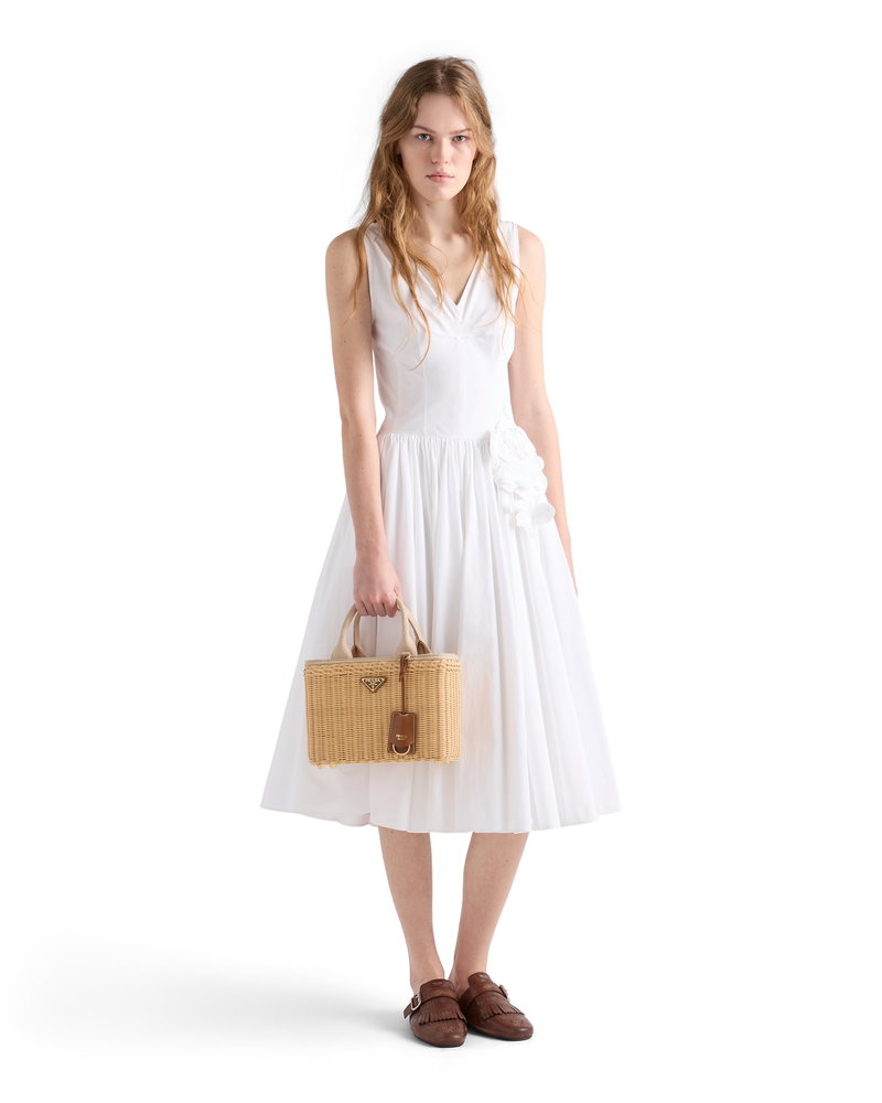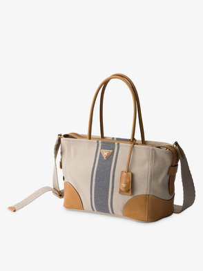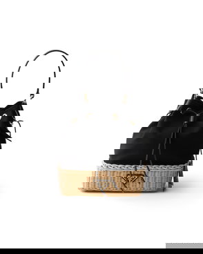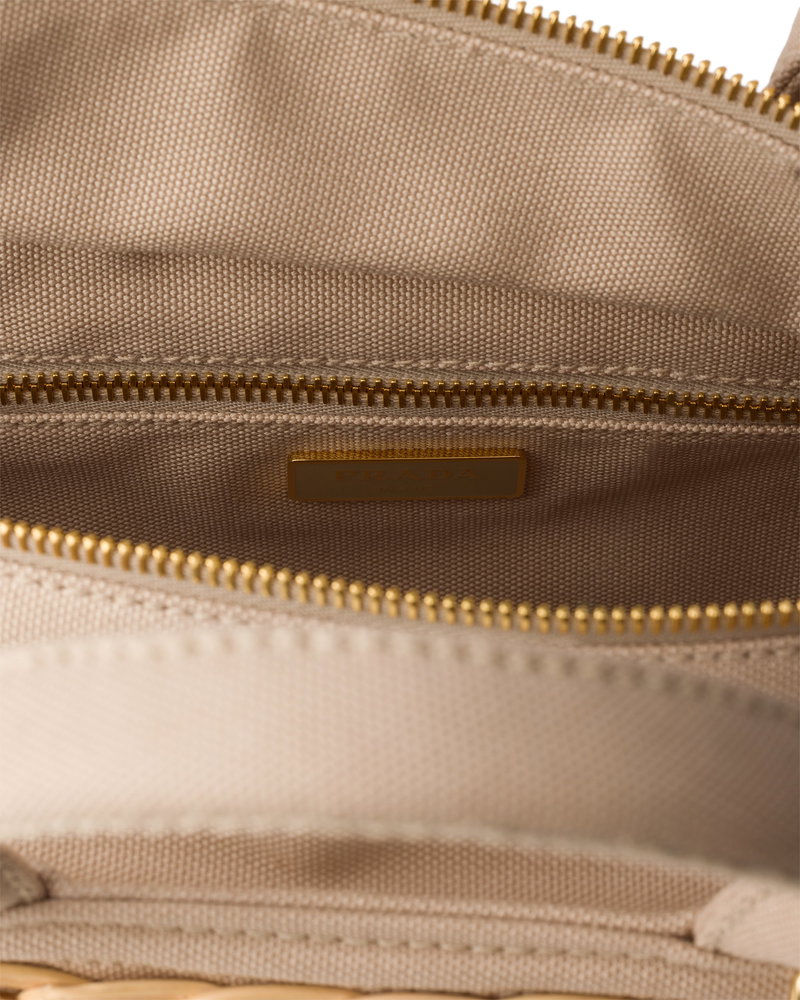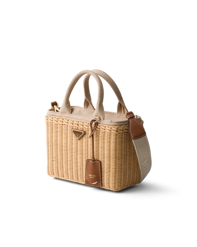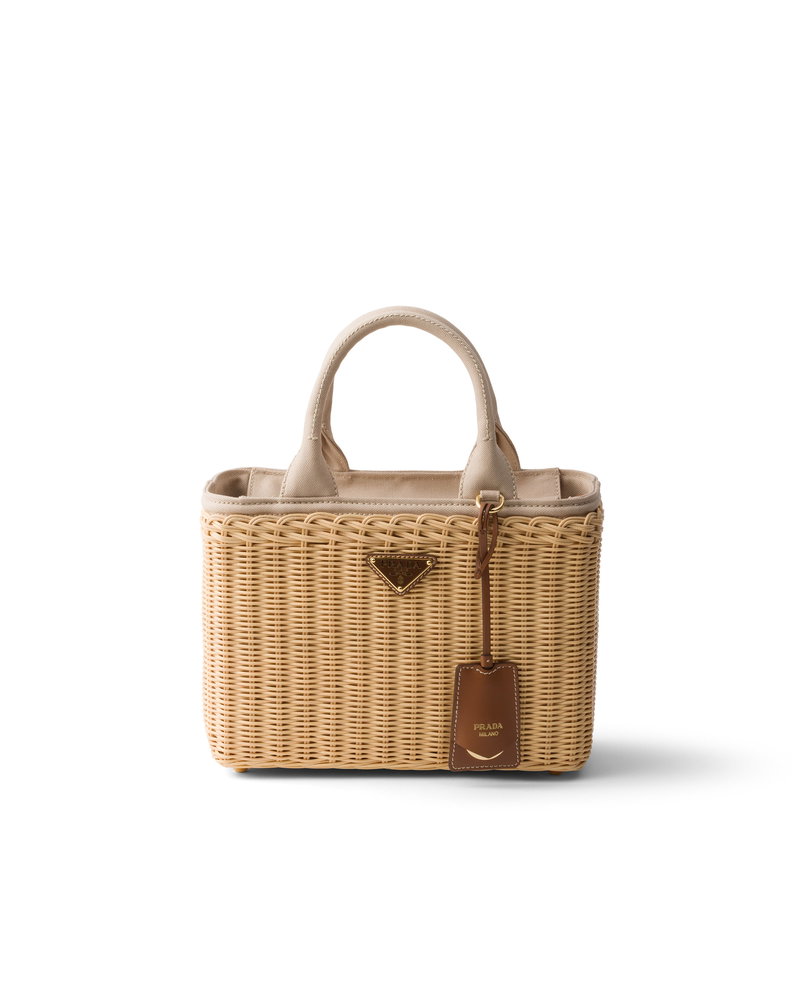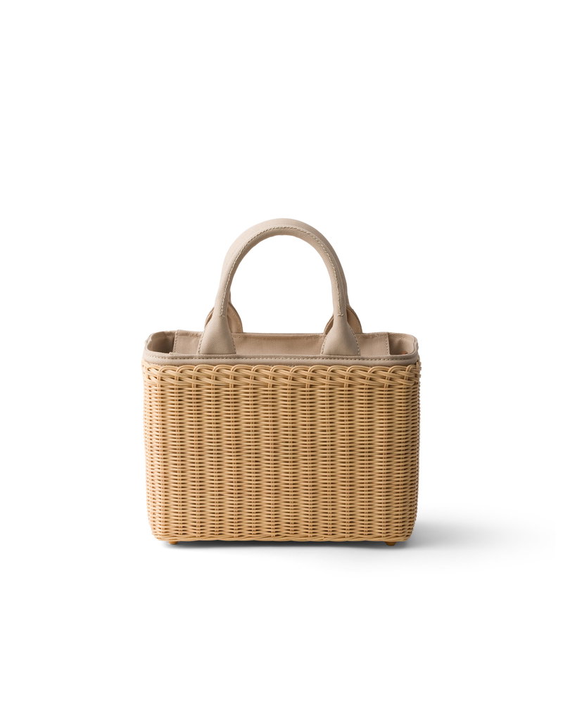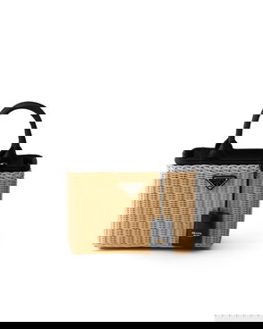 Medium Wicker And Canvas Tote Bag