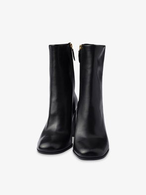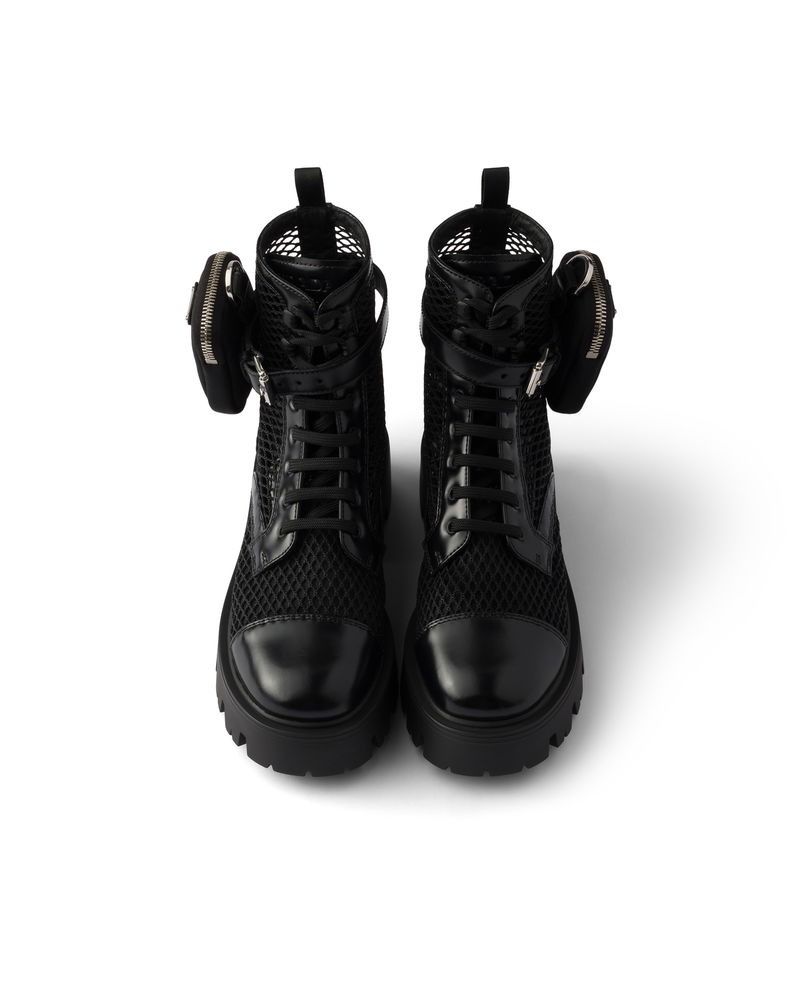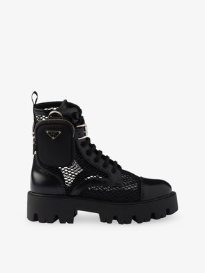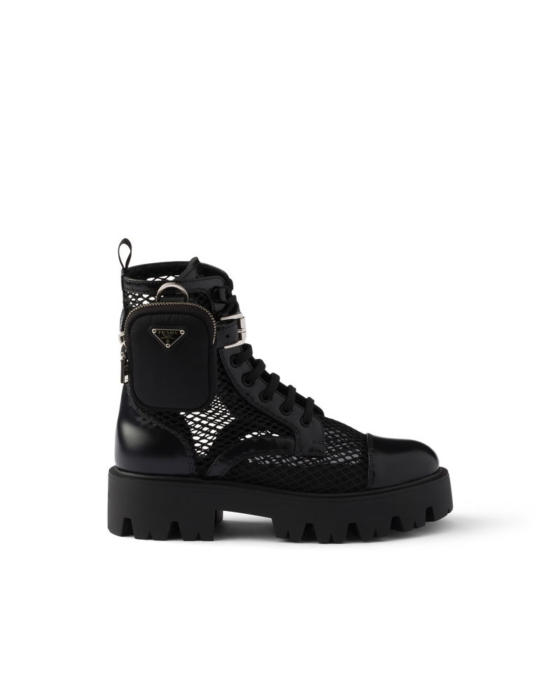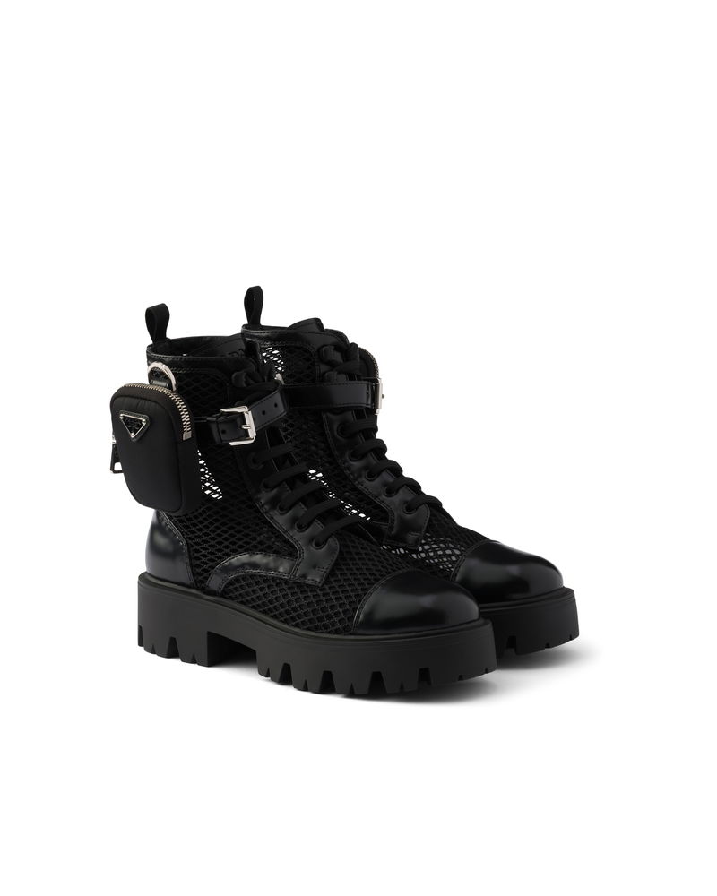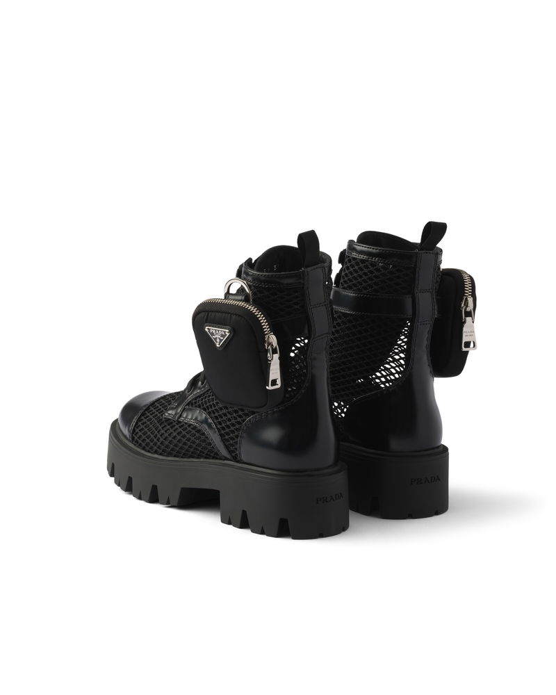 Mesh Fabric And Brushed Leather Booties With Pouch