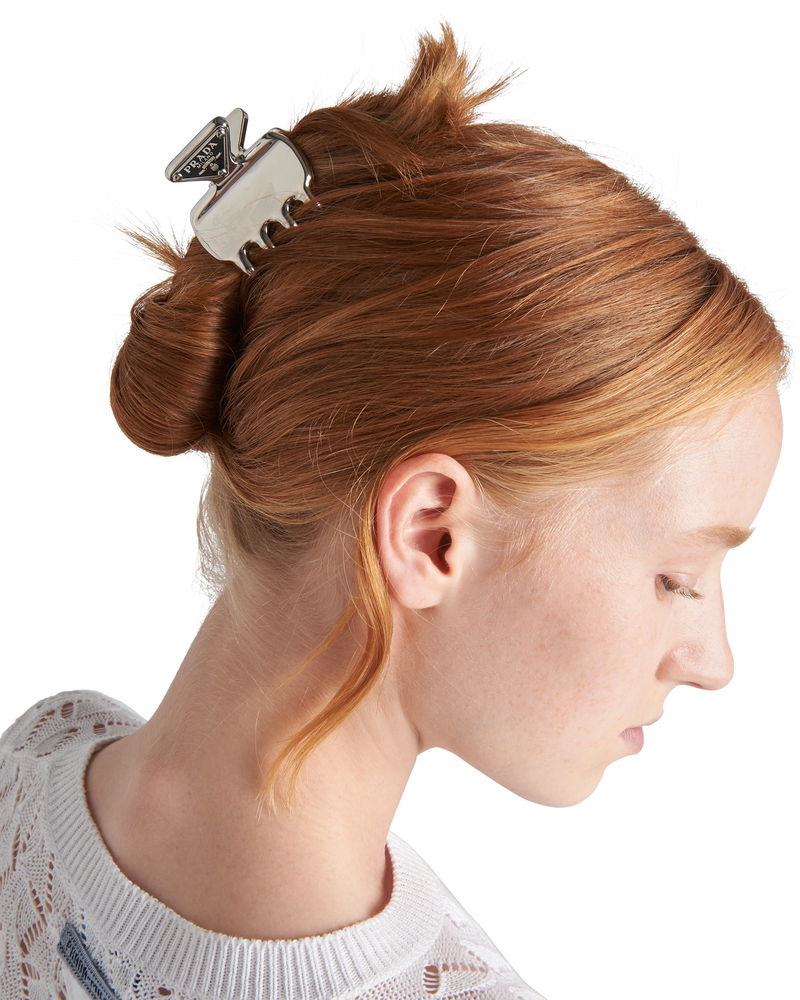 Metal Hair Clip, Woman, Steel Gray