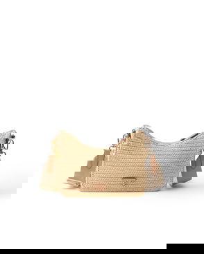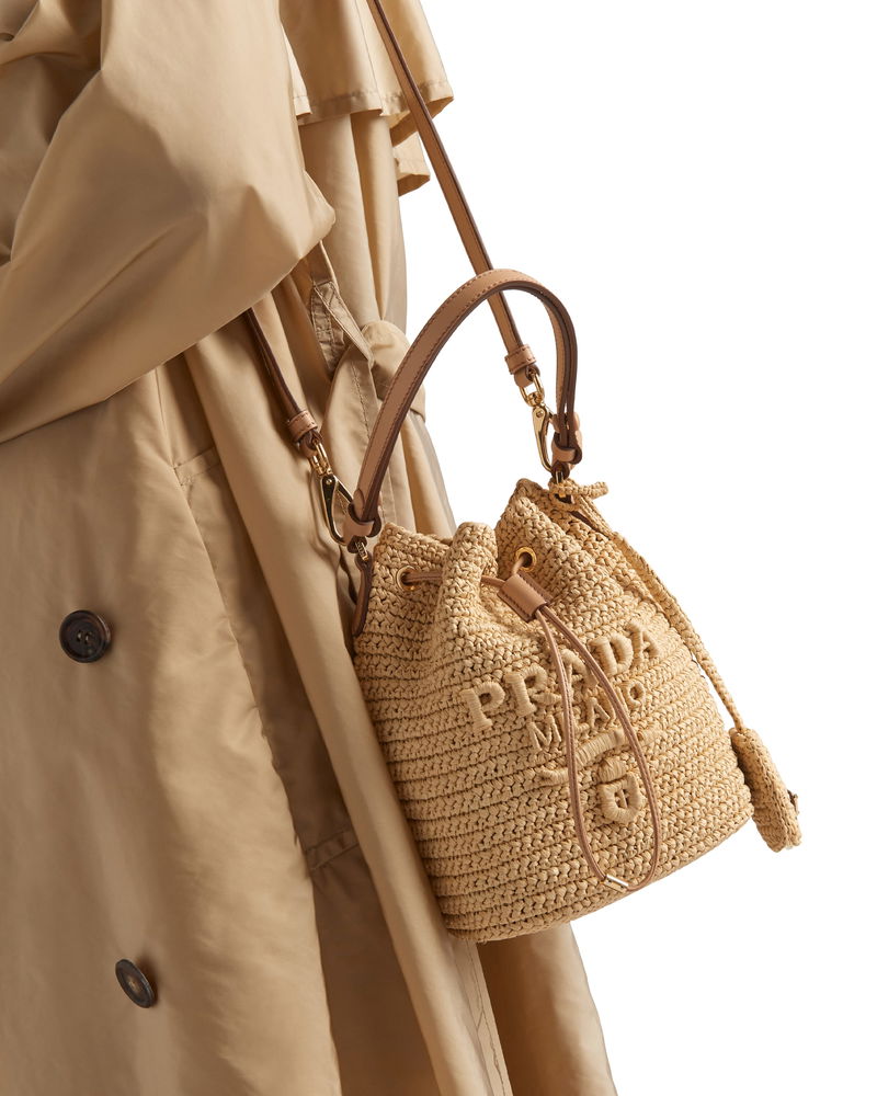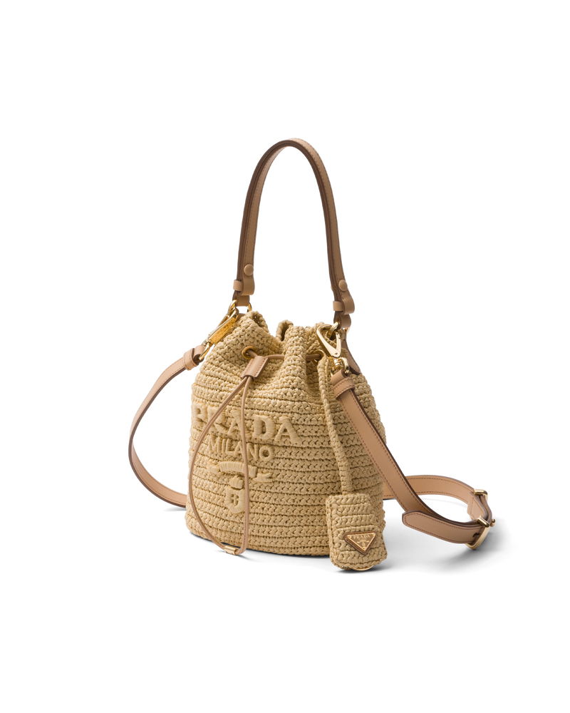 Mini Crochet And Leather Bucket Bag, Woman, Natural