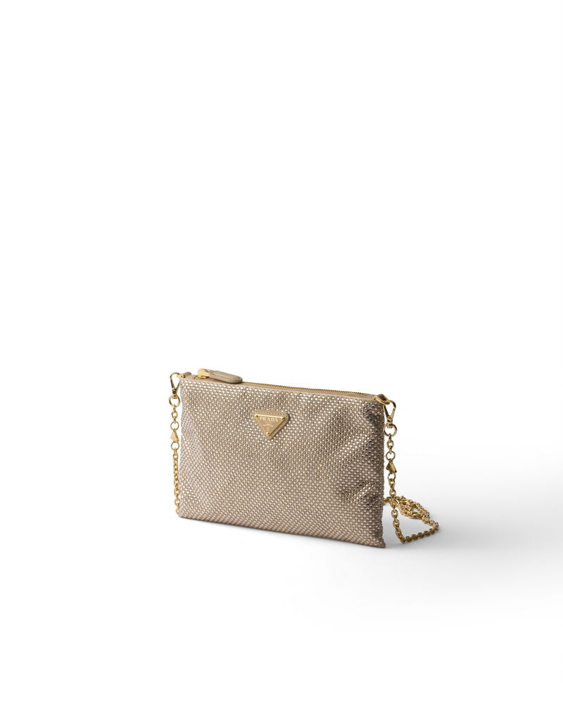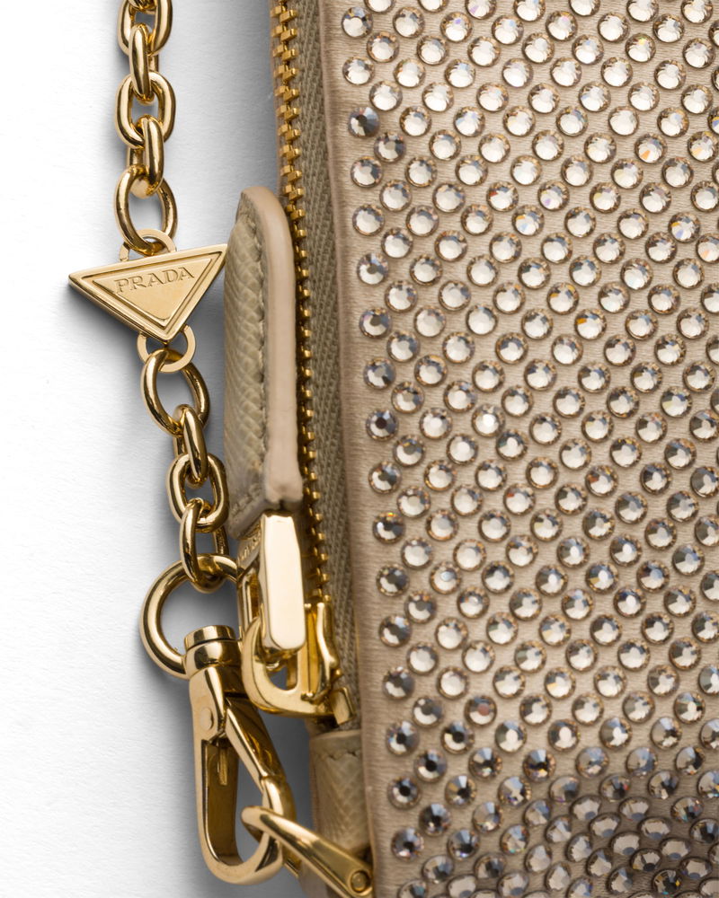 Mini Crystal-studded Bag With Shoulder Strap, Woman, Sand Beige