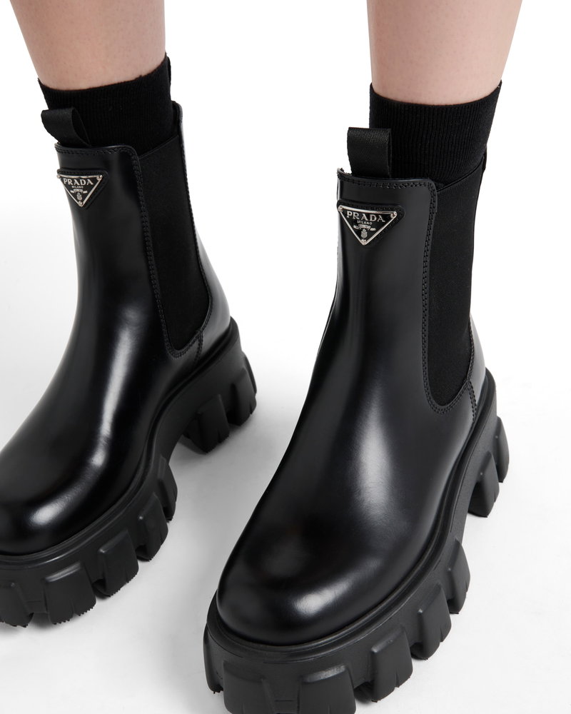 Monolith Brushed Leather Chelsea Boots, Woman, Black, Size 36