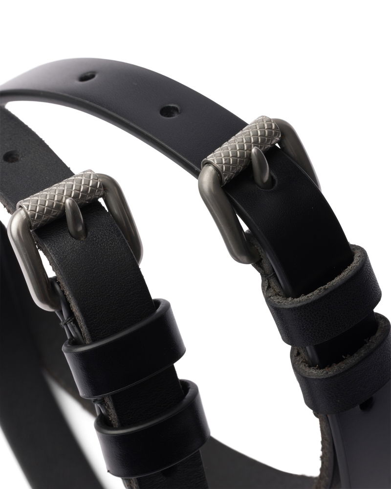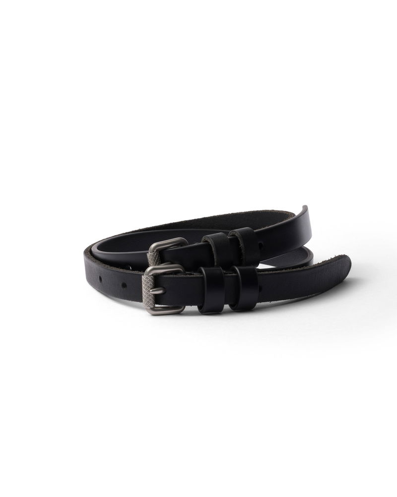 Narrow Leather Belt, Woman, Black, Size 75