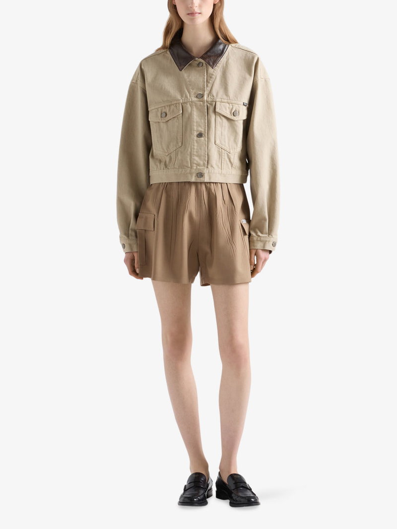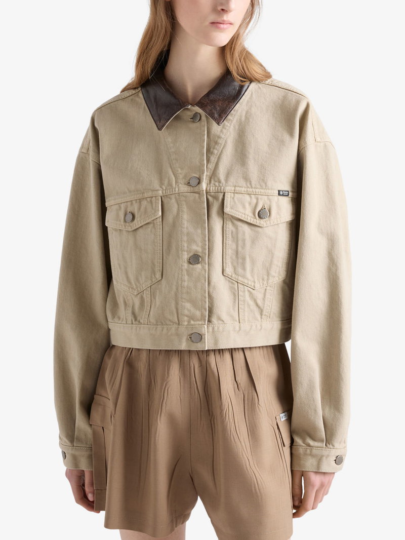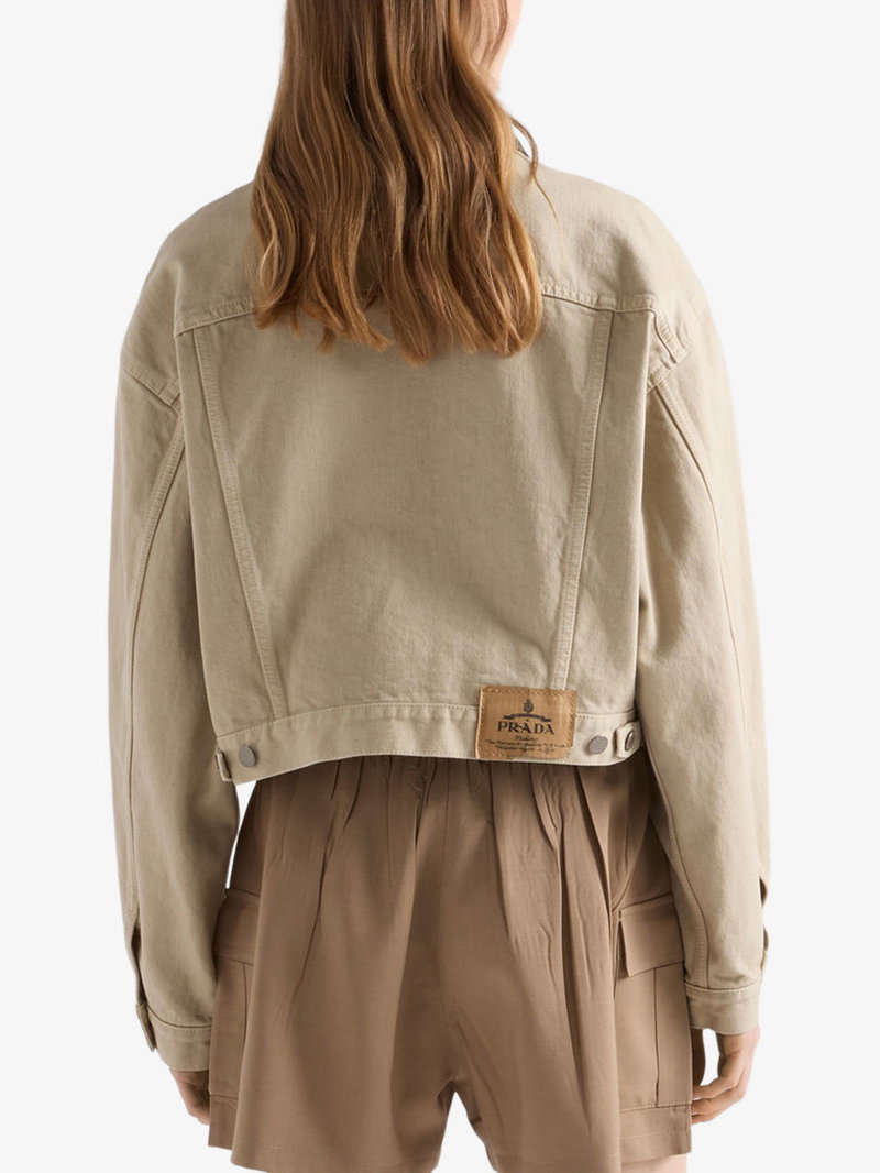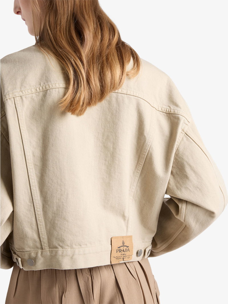 Shop More: Neutral Clothing Neutral Coats & Jackets PRADA Clothing PRADA Coats & Jackets PRADA Denim Jackets PRADA Neutral Clothing