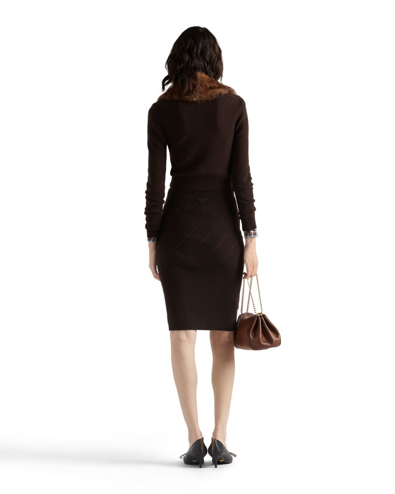 Openwork Cashmere Knit Skirt, Woman, Dark Brown, Size 36