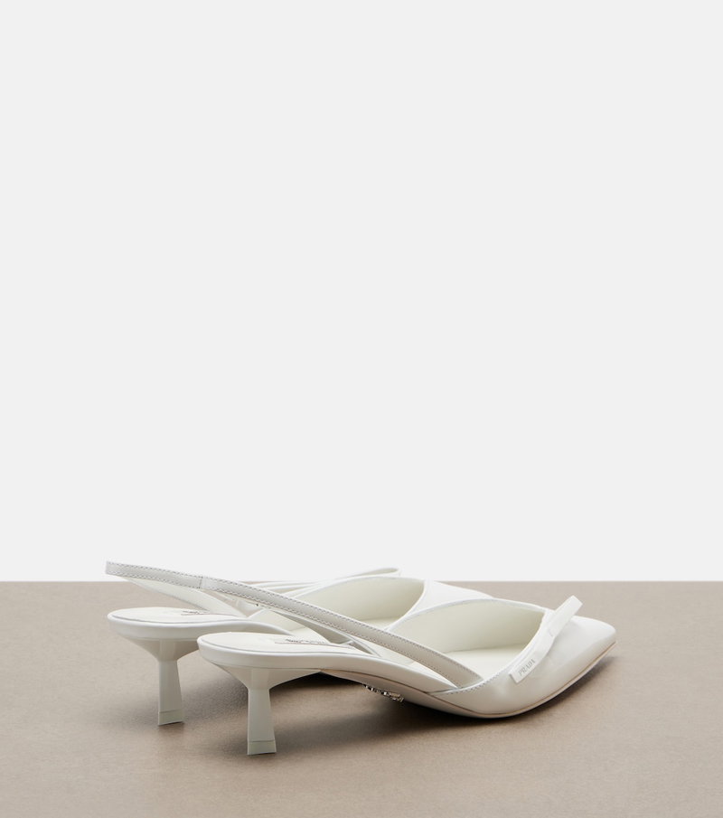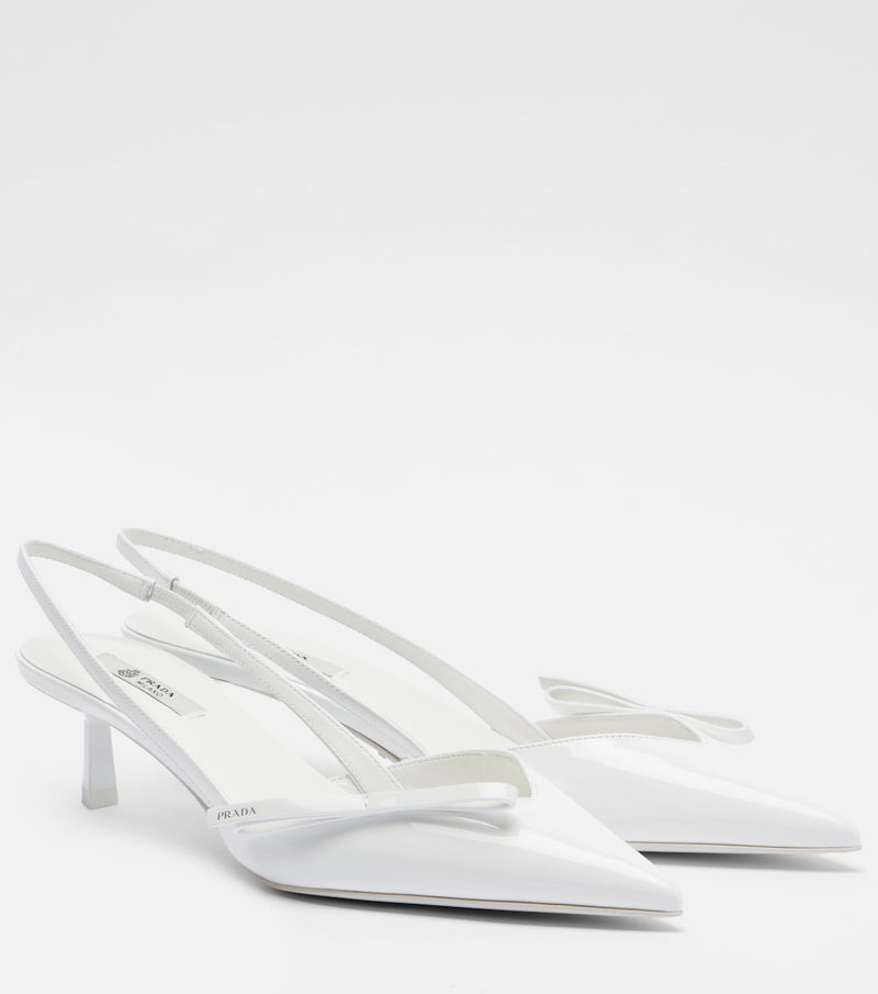 Prada takes Italian heritage into a distinctly modern direction with a streamlined and fashion-forward approach. These slingback pumps are crafted from patent leather and finished with bow details on the vamps.