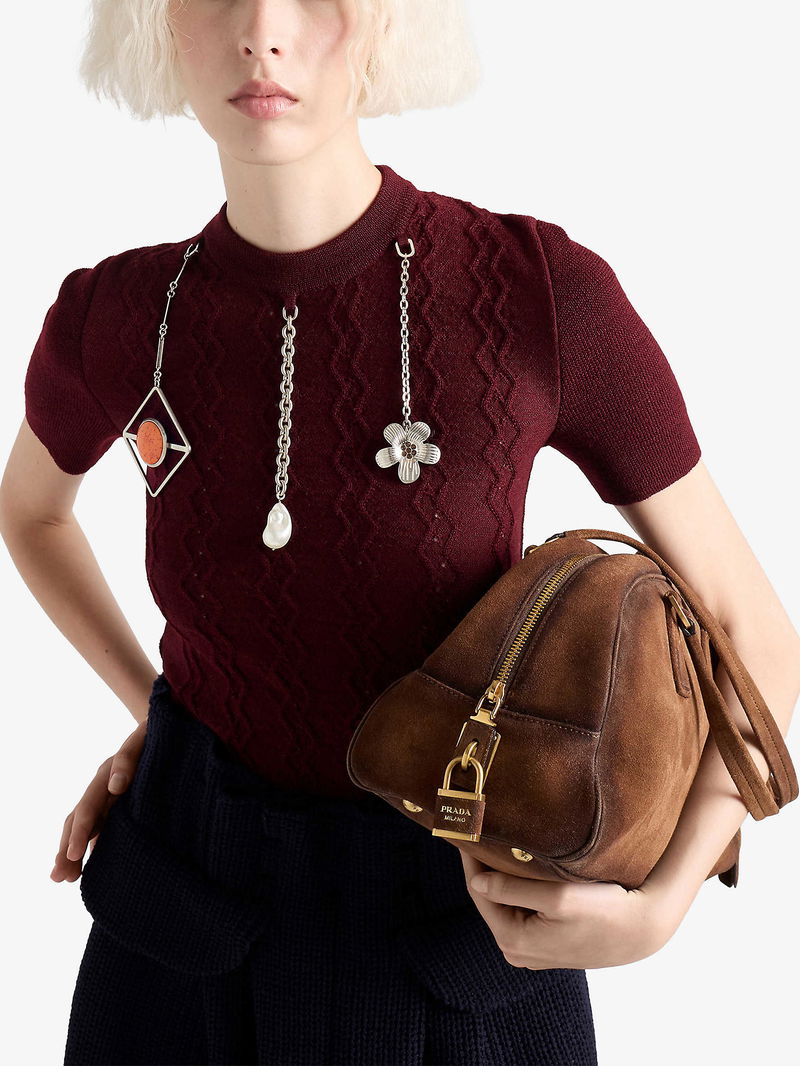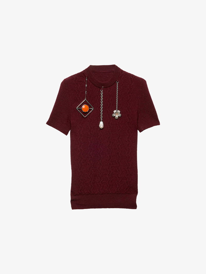 Pendant-Embellished Short-Sleeved Wool Jumper