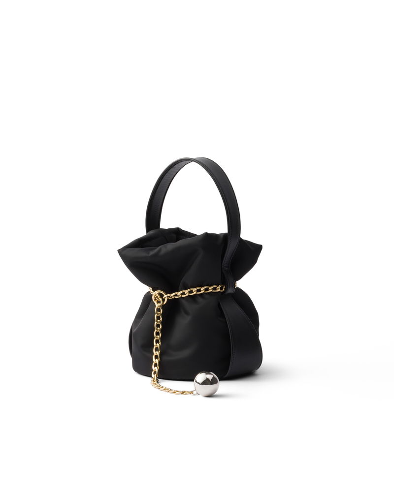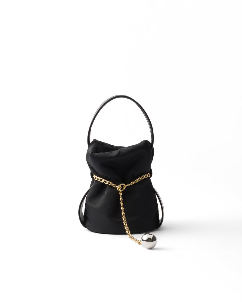 Petit Sac Noir Mini Re-nylon And Nappa Leather Bucket Bag, Woman, Black