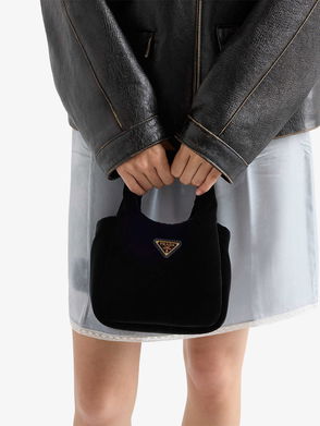 Prada embodies modern sophistication, blending timeless Italian craftsmanship with an innovative spirit. The Prada Petit Sac Noir is a playful mini bucket bag crafted from plush velvet and smooth leather, and finished with a gold-toned chain detail.