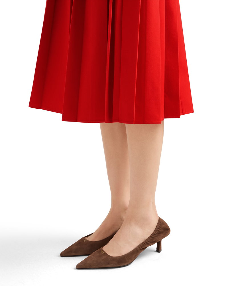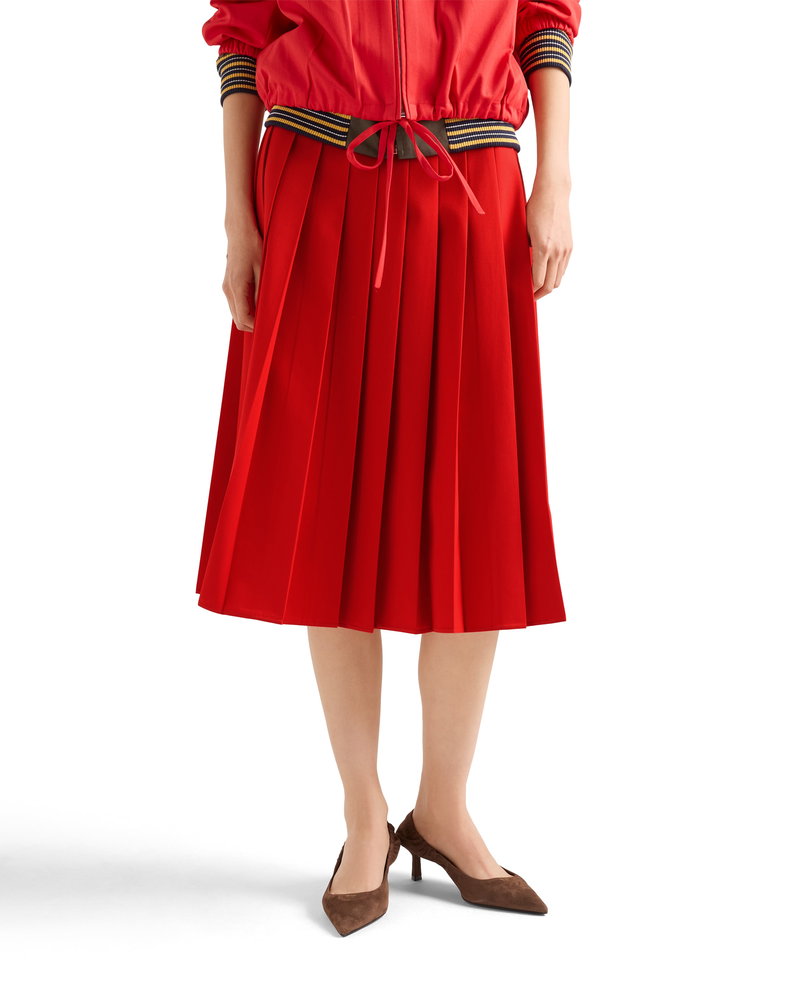 Shop More: Red Clothing Red Skirts Red Midi Skirts PRADA Clothing PRADA Red Clothing PRADA Skirts PRADA Pleated Skirts