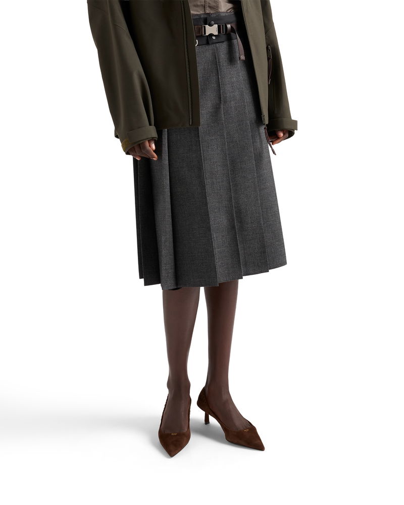 Shop More: Grey Clothing Grey Skirts Grey Midi Skirts Grey Pleated Skirts PRADA Clothing PRADA Grey Clothing PRADA Skirts