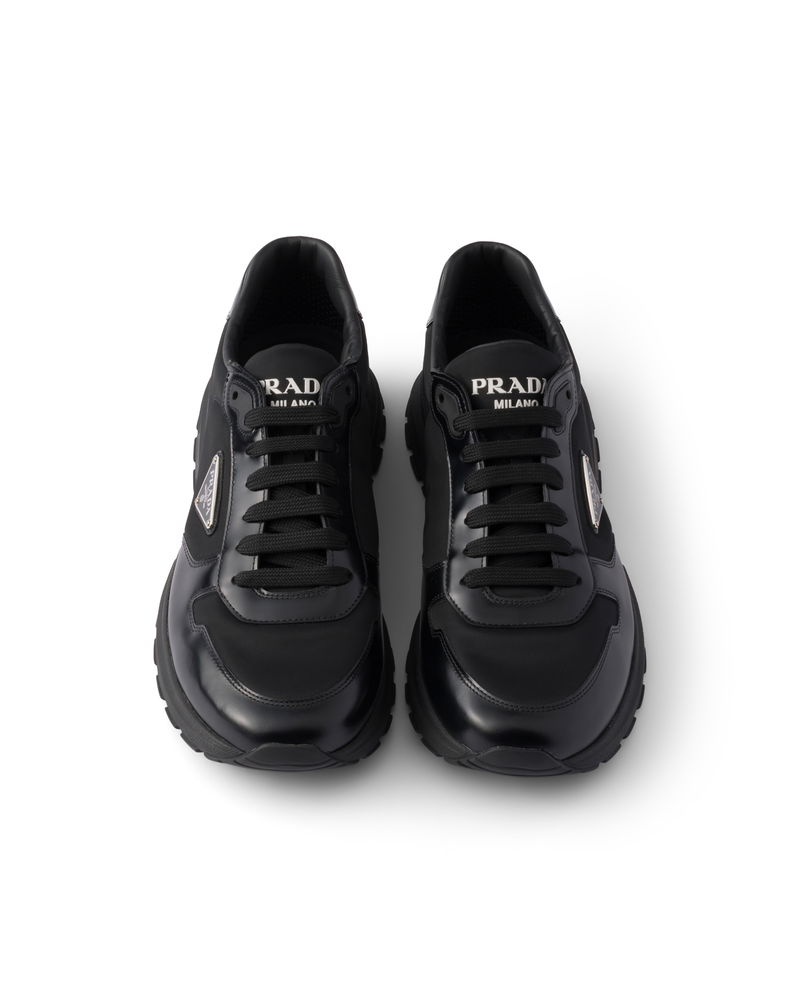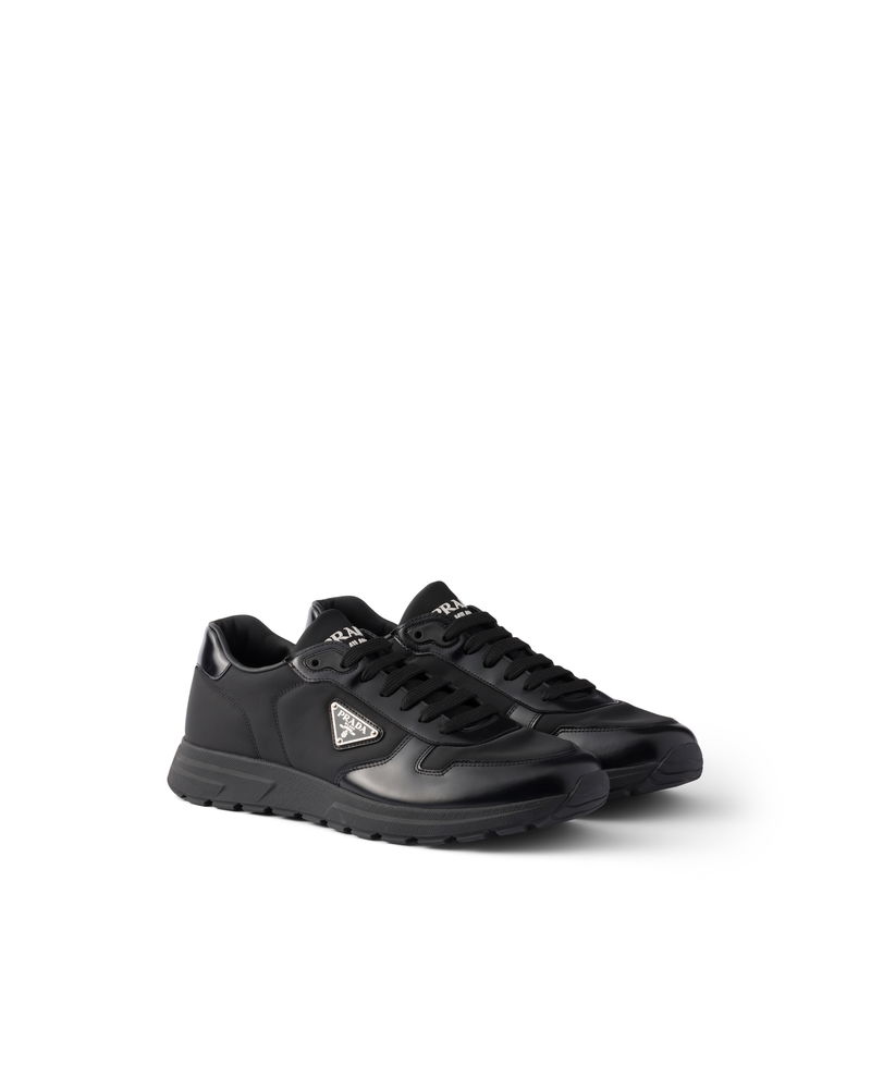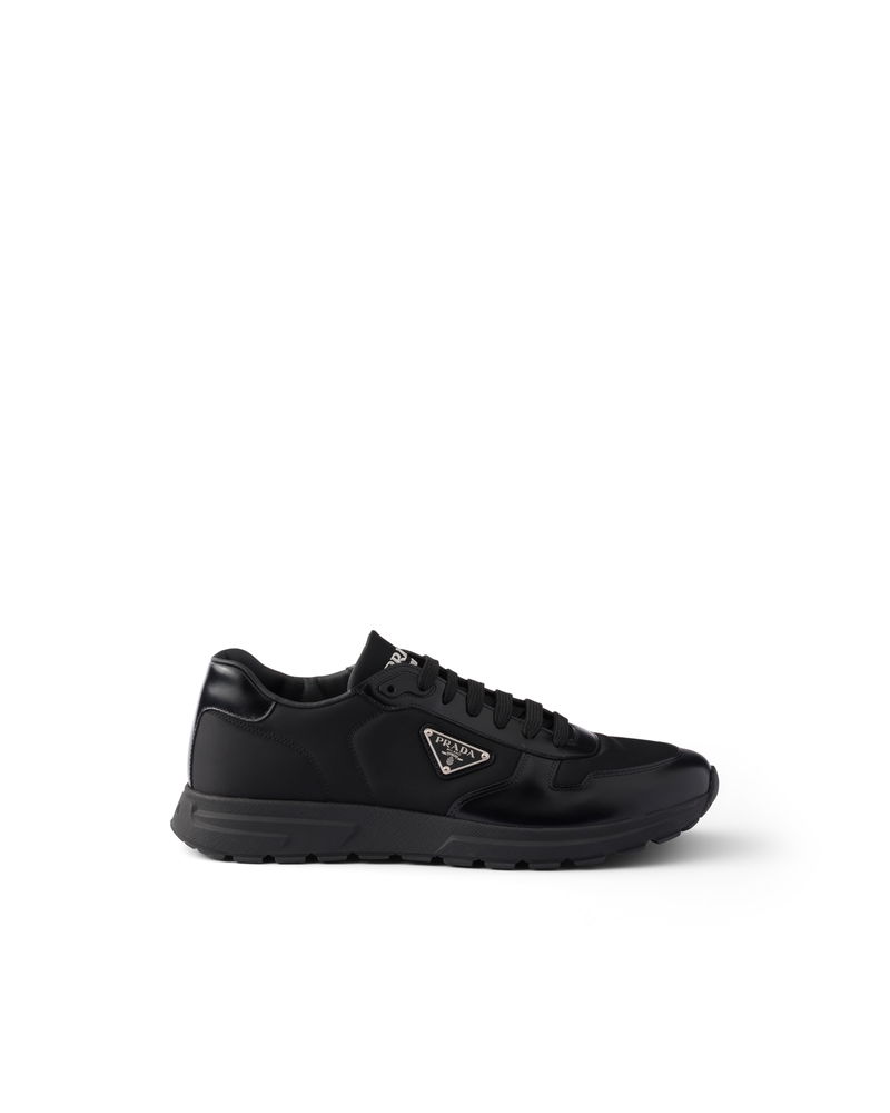 Prax 01 Re-nylon And Brushed Leather Sneakers, Man, Black, Size 5,5