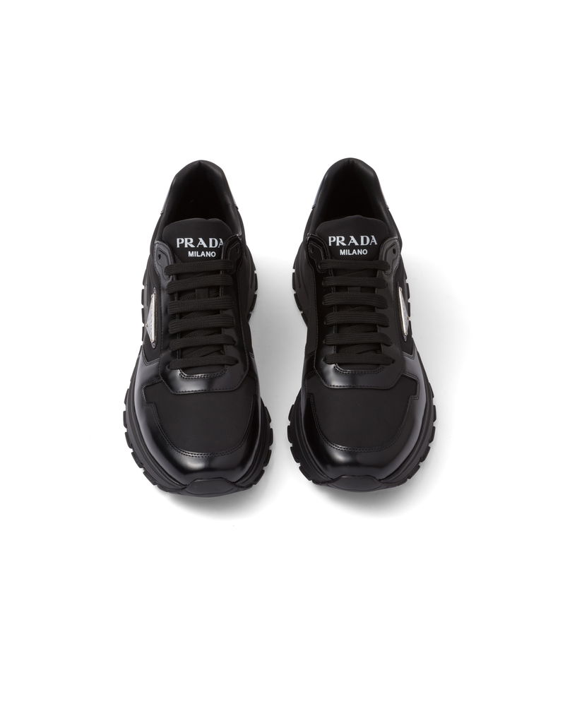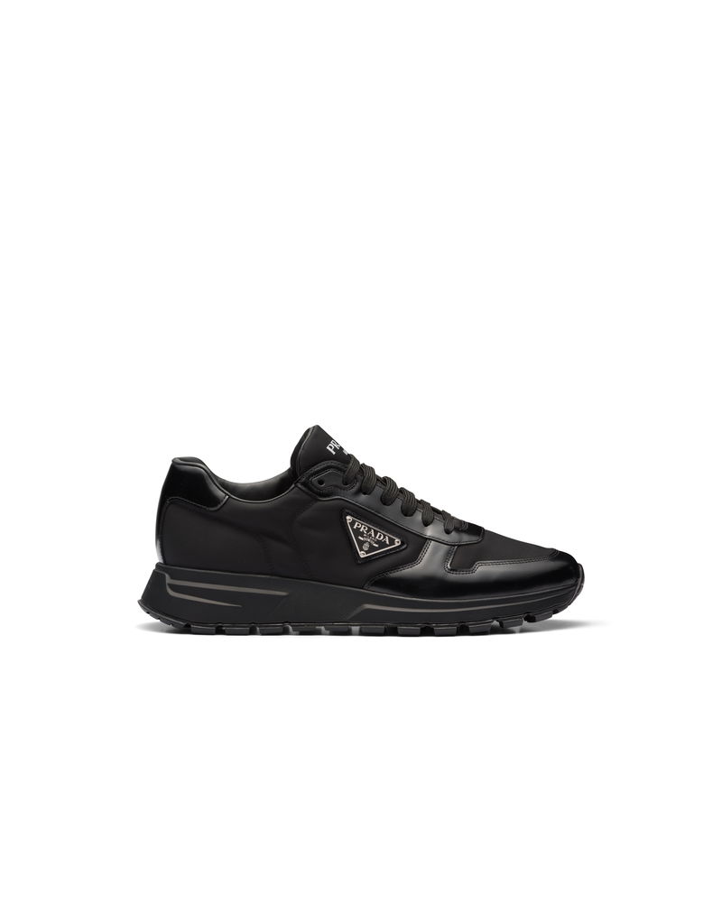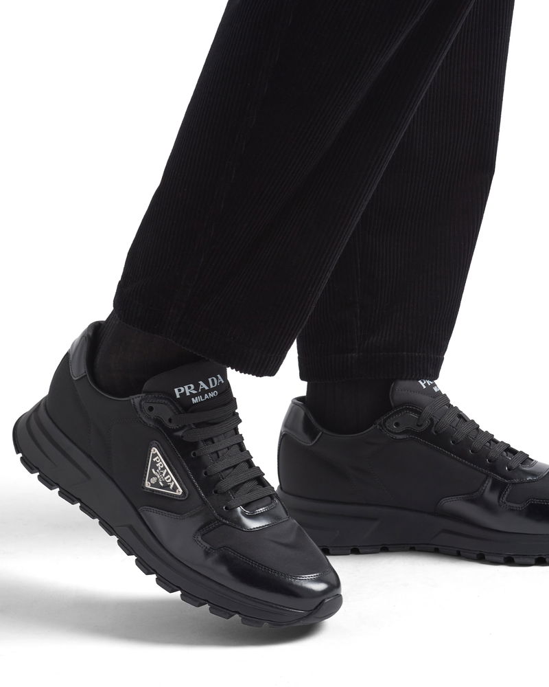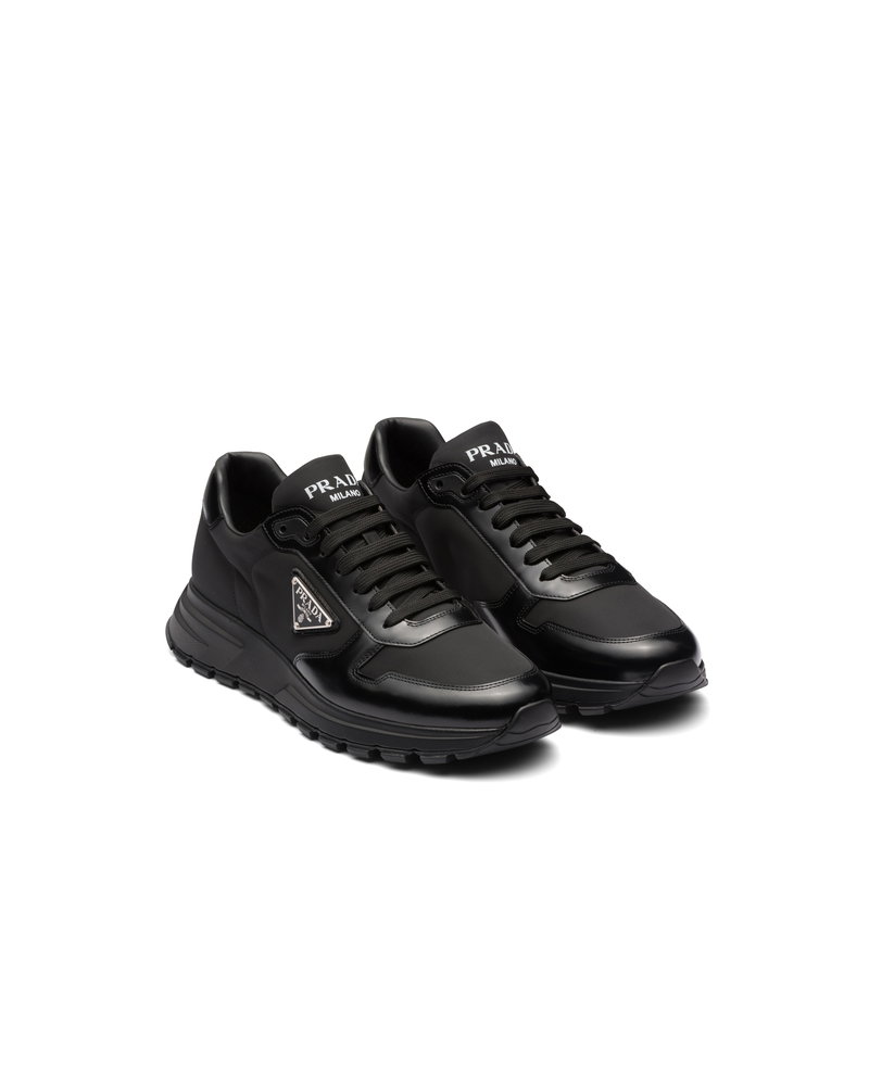 Prax 01 Re-nylon And Brushed Leather Sneakers, Man, Black, Size 5