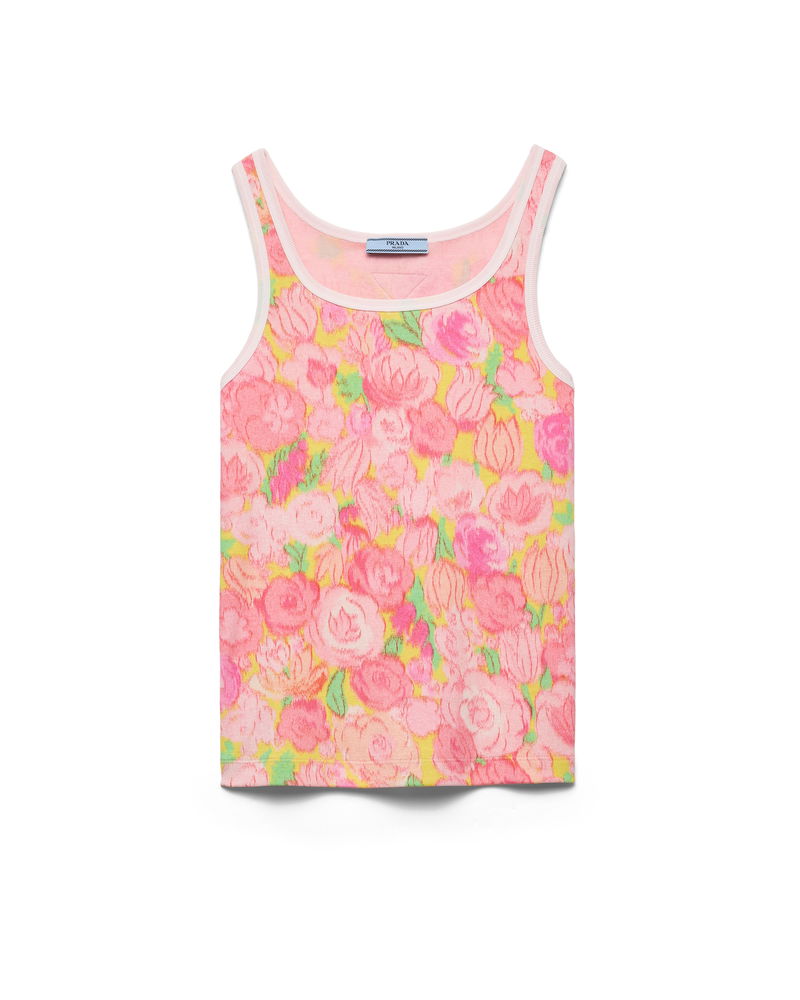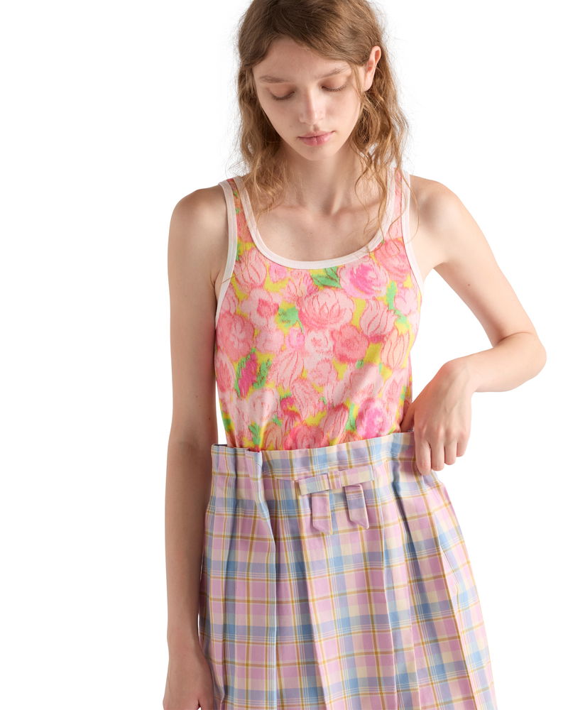 Printed Ribbed Knit Cotton Tank Top, Woman, Pink, Size 36