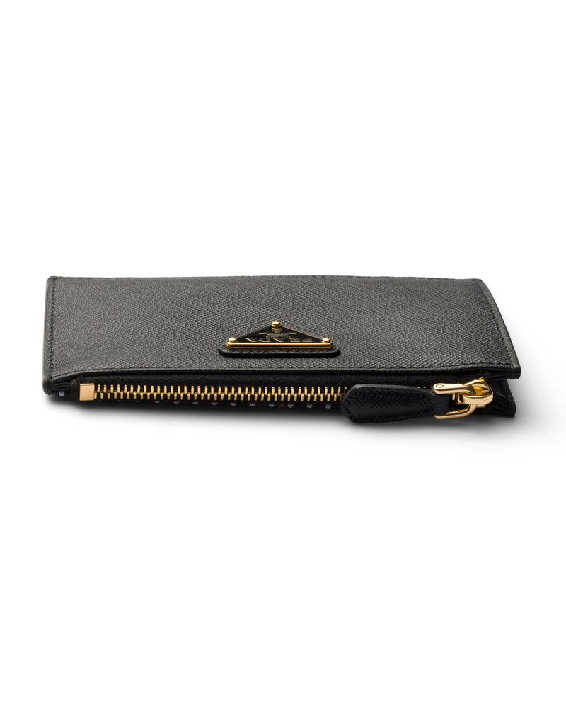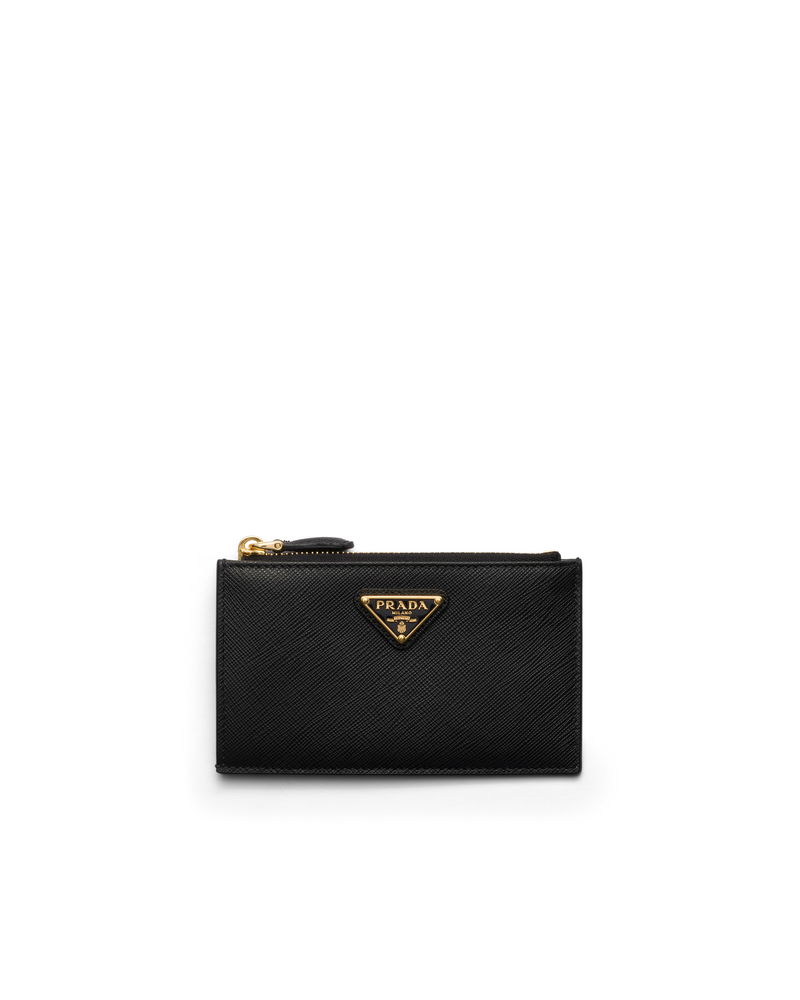 Printed Saffiano Leather Card Holder, Woman, Black