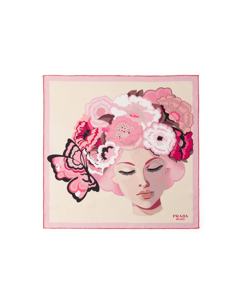 Printed Silk Twill Scarf 55, Woman, Alabaster Pink
