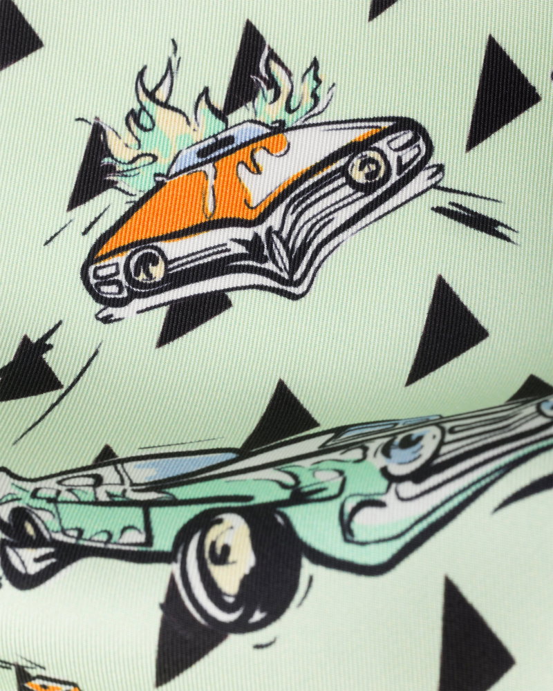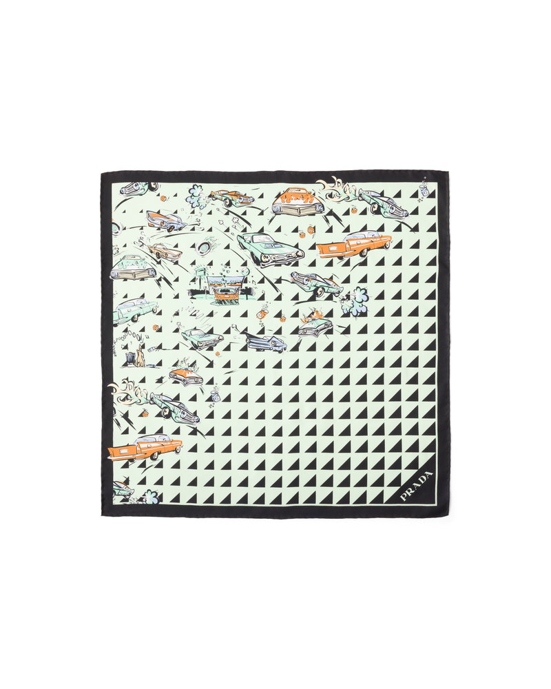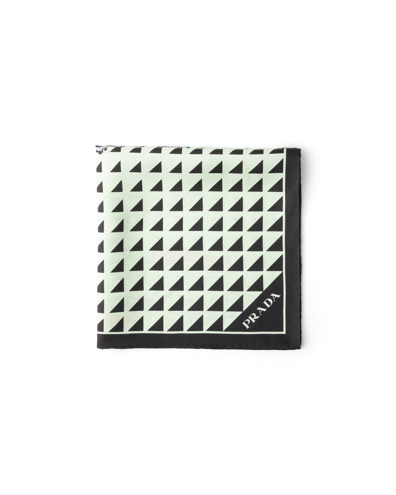 Printed Silk Twill Scarf 55, Woman, Black/aqua