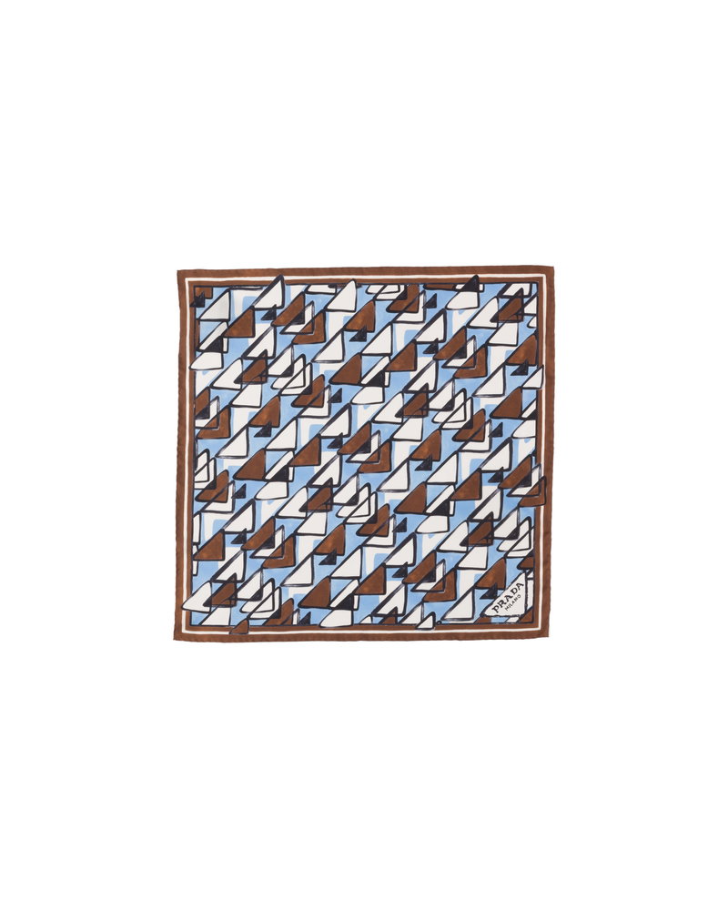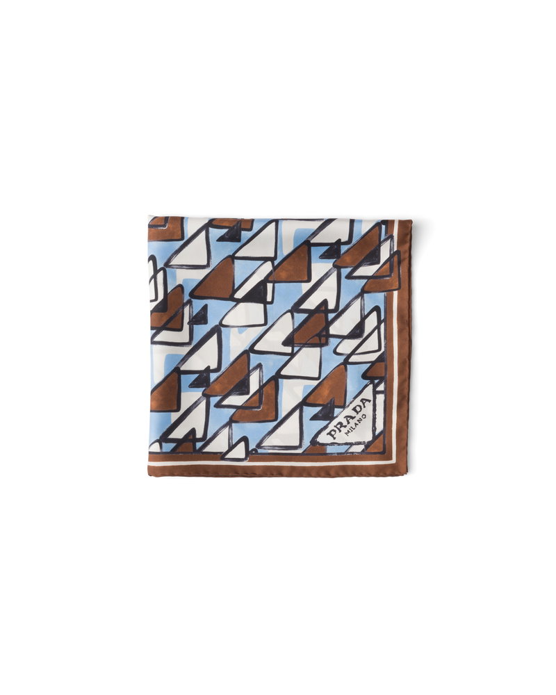 Printed Silk Twill Scarf 55, Woman, Light Blue/tabacco