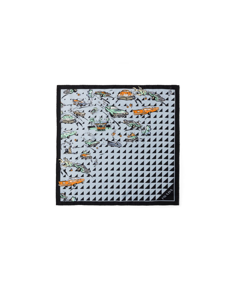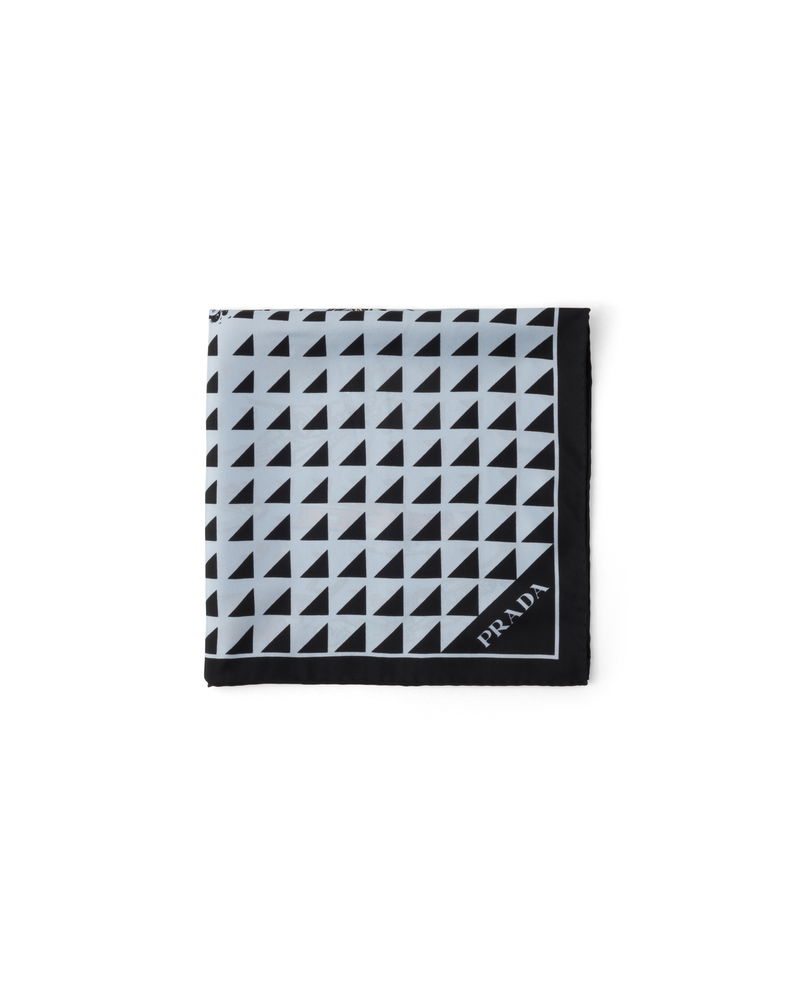 Printed Silk Twill Scarf 55x55, Woman, Black/sky Blue