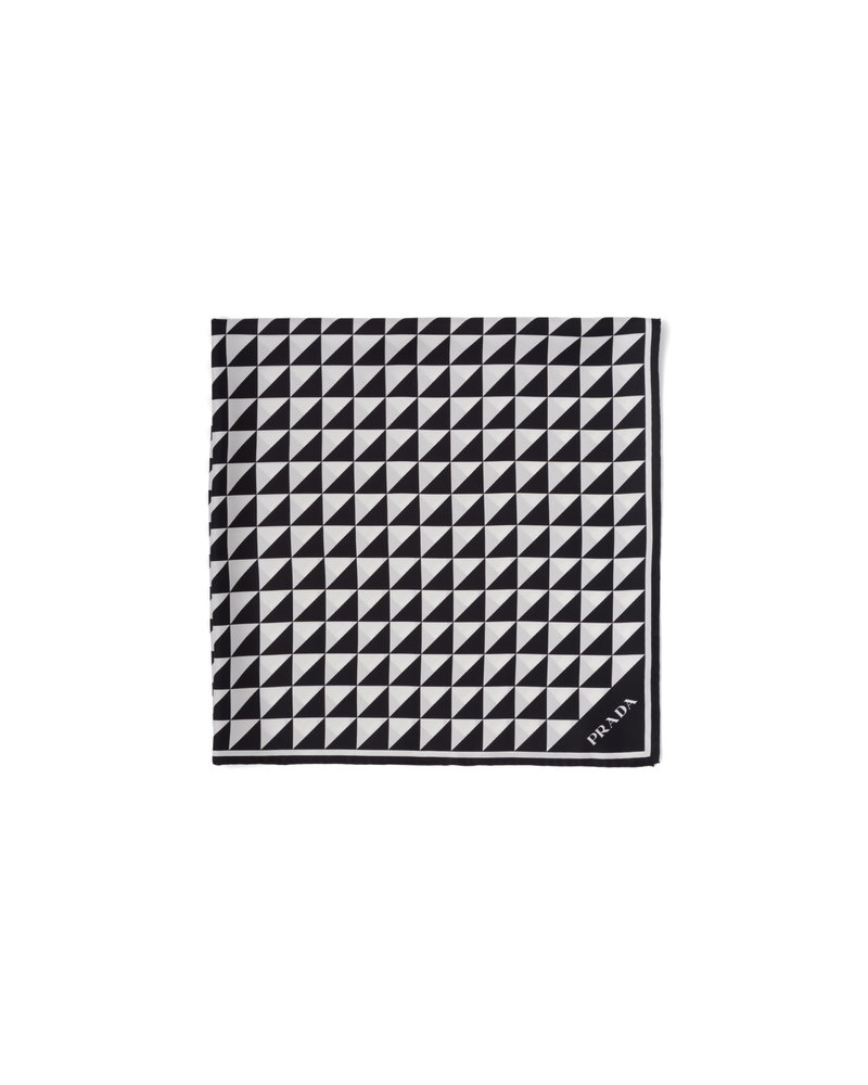 Printed Silk Twill Scarf 90, Woman, Black/white