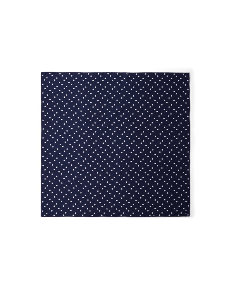 Printed Silk Twill Scarf 90, Woman, Blue/white